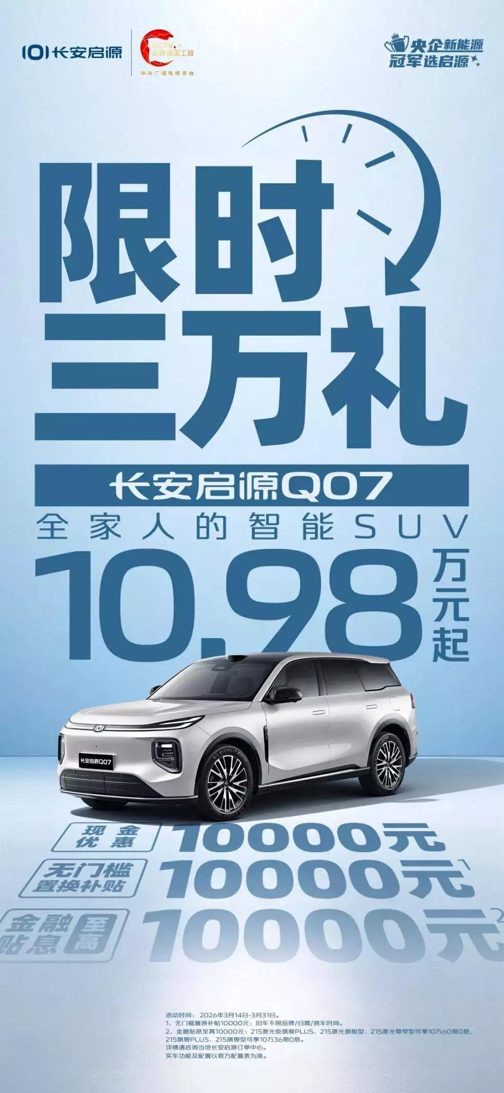 正值三月购车旺季,长安启源推出“限时三万礼”政策:现金优惠10000元、无门槛置换补贴10000元、至高金融贴息10000元,起售价低至10.98万元,活动截至3月31日。如果你也热爱户外、注重生活品质,想在春天带家人去感受山野与自由,这对“春日出行最佳CP”或许正是你在寻找的答案。