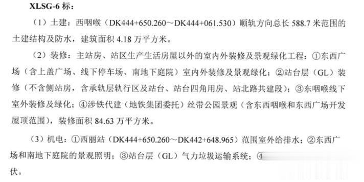 位于深圳市南山区,由城市轨道交通工程、枢纽配套工程、市政工程、枢纽内相关开发配套工程组成。委托代建范围为铁路红线范围内西丽综合交通枢纽土建工程,以及贴临铁路的地下庭院和部分地铁车站土建工程等。本次招标内容仅含丝带公园景观工程,其余内容已在2024年12月完成招标。
