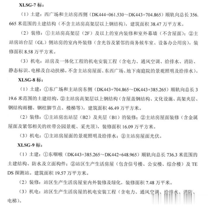 本次招标共划分为4个标段:XLSG-6、7、8、9,详细内容如下: