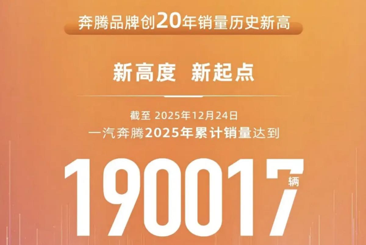 年销量破19万的出现,恰逢其时。一方面,这印证了一汽奔腾精简产品序列的决策是明智的;另一方面,2024年高调宣布“全面向新”、All in新能源战略后,2025年便迅速迎来销量突破,说明战略方向的正确性。