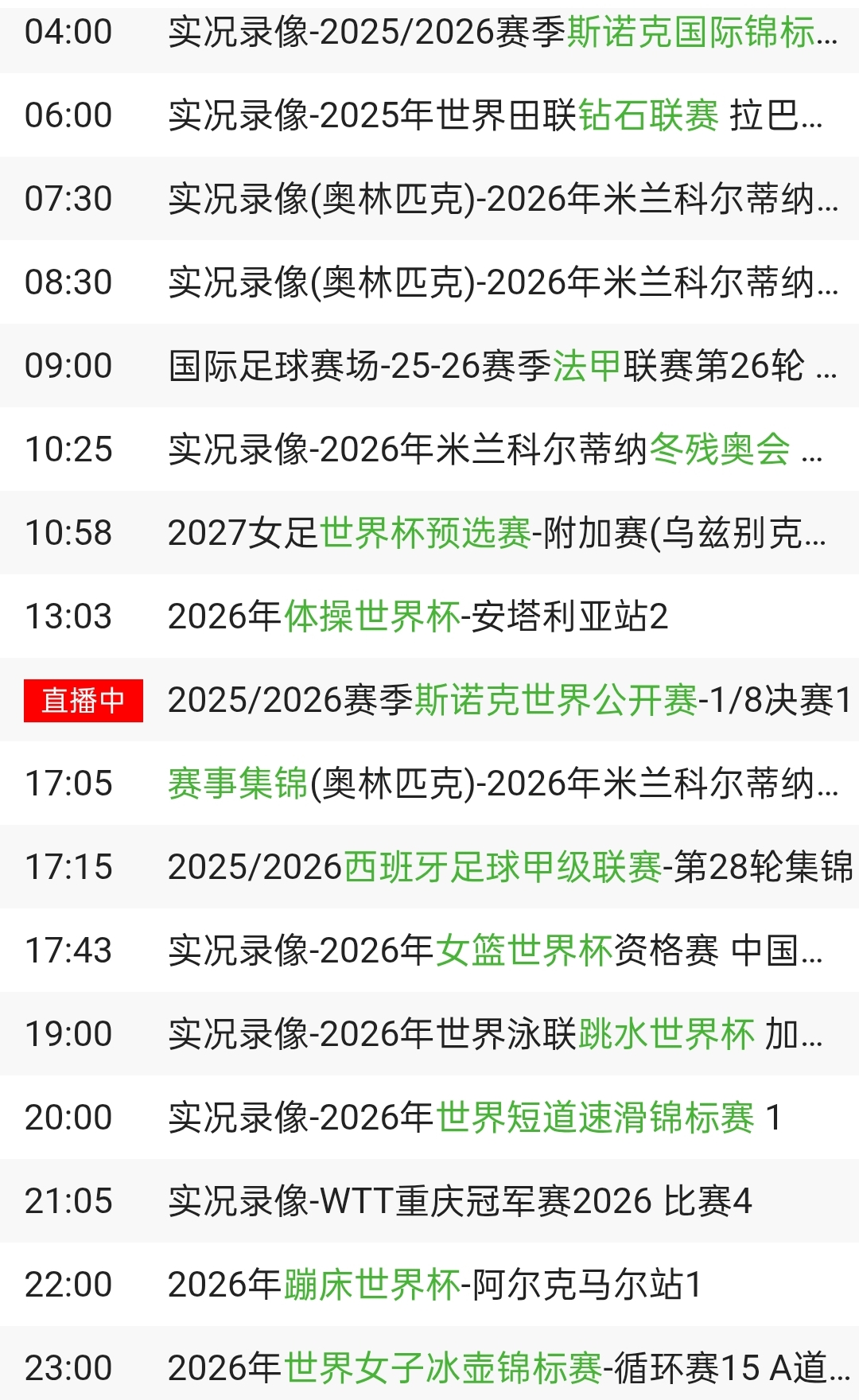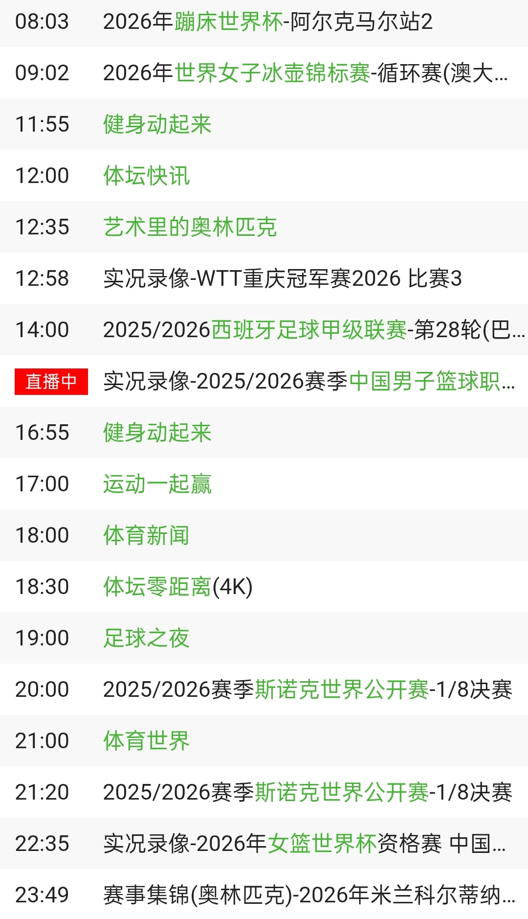 央视体育CCTV5、CCTV5+节目表: