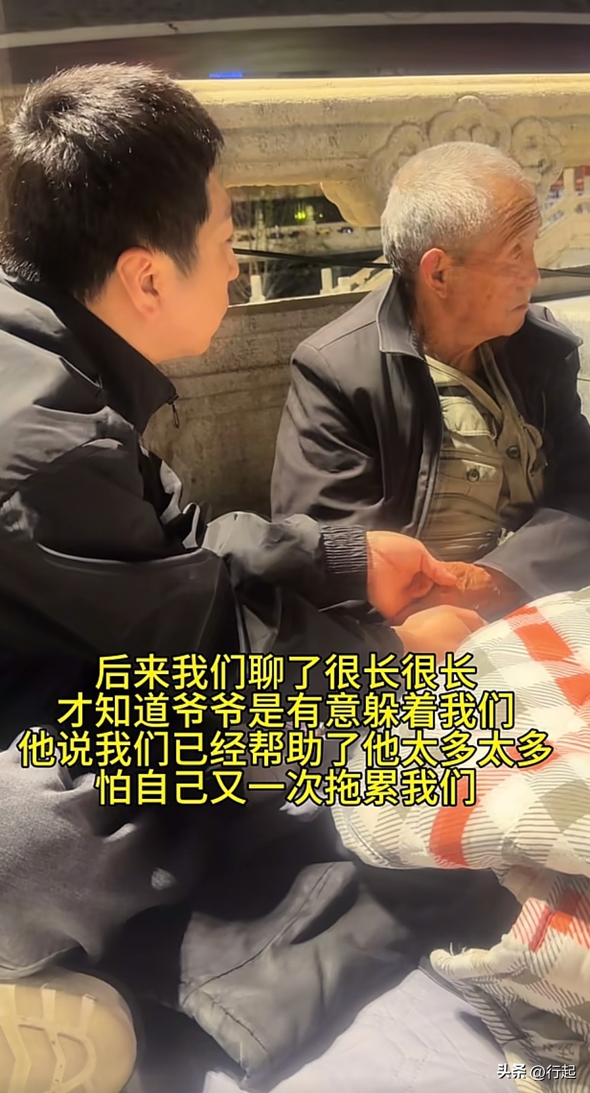 后来他们和爷爷聊了很久才知道,原来爷爷出来流浪有段时间了,并且还故意躲着博主夫妻俩。爷爷心里是愧疚的,他说博主已经帮助他太多太多,他怕自己又一次拖累他们。