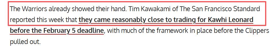 对于勇士来说,这笔交易几乎没有拒绝的理由,甚至可以说是他们目前唯一的出路。本赛季的勇士,进攻端的脆弱有目共睹,虽然场均能投出44.6次三分球,领跑全联盟,但进攻效率只有114.8,排在联盟第18位,很多时候,勇士能很快找到进攻节奏,不过很难保持凶猛的进攻势头。更致命的是,没有库里的比赛,勇士的进攻效率直接暴跌到110.3,排在联盟第27位,几乎沦为联盟下游水平。而伦纳德,正是能解决这个问题的最佳人选。