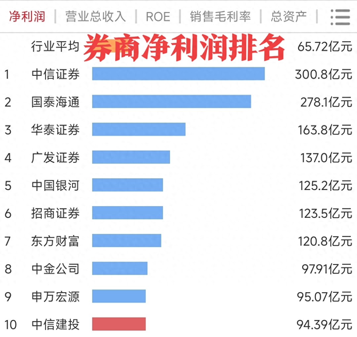 中信证券连续多年蝉联券商营收、盈利冠军,2021年以来历年的净利润分别为:231亿元,213亿元,197亿元,217亿元,301亿元。