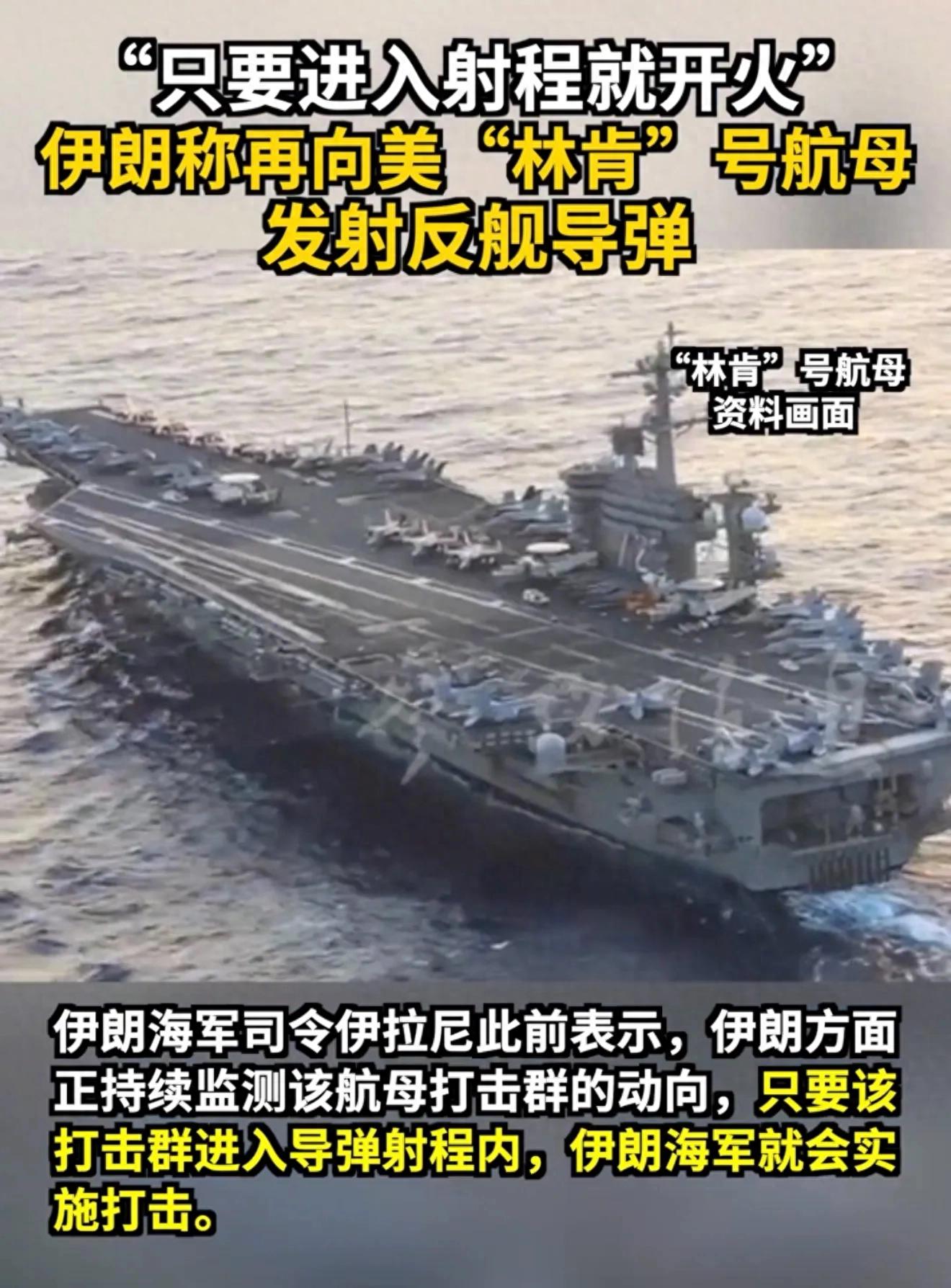 最后,伊朗还发出羞辱式的通牒:目前正密切监测“林肯”号航母打击群的动向,只要进入导弹系统射程范围内,伊朗海军就会对其实施打击。