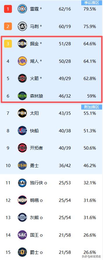 西部最新排名如下: