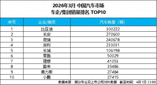 4 月 1 日,比亚迪发布 2026 年 3 月产销数据,单月总销量达300222 辆,强势突破 30 万辆大关,斩获中国车企销量冠军,并连续 58 个月蝉联中国新能源汽车销量冠军,持续稳固行业龙头地位。截至目前,比亚迪新能源汽车累计销量已超1580 万辆,一季度累计销售 700463 辆,以硬核数据印证技术与规模双重实力,树立新能源汽车新标杆。