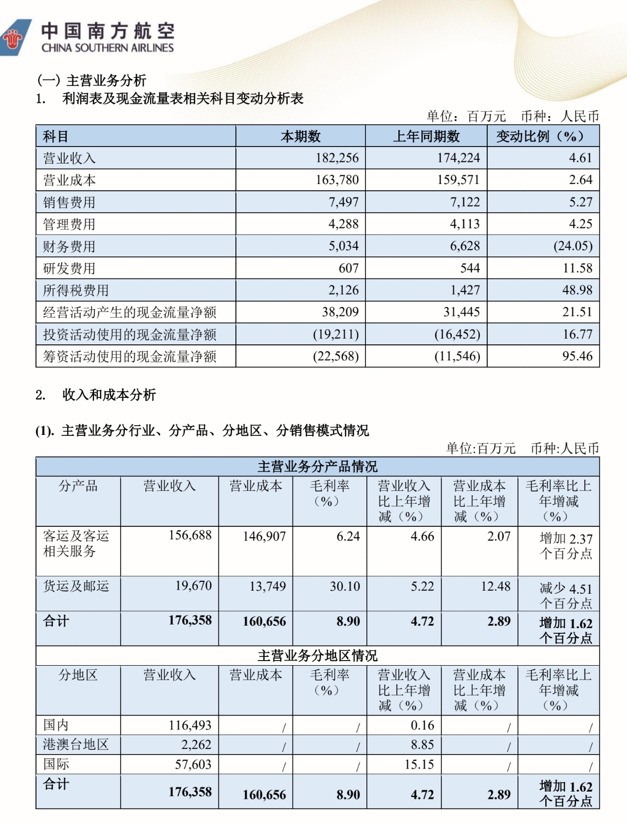 三大航业绩汇总1,南方航空
