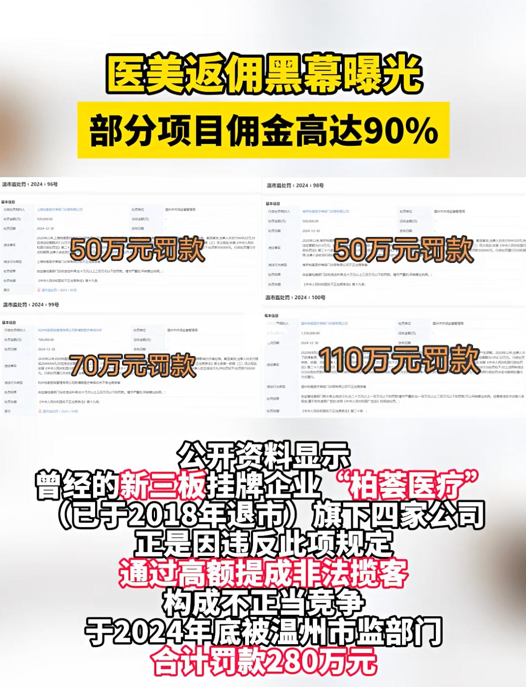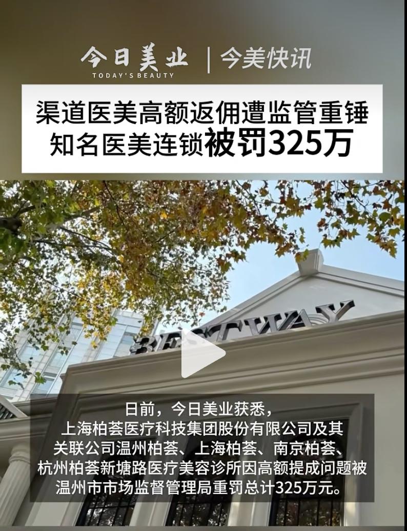 就在2024年底至2025年初,柏荟旗下的上海、南京、杭州、温州四家机构,因为高额返佣、商业贿赂、虚假宣传,刚被温州市监部门罚了325万元。其中温州柏荟还被查出虚构台湾籍医生资质,直接把一个普通医生包装成“大师”忽悠消费者。2025年10月,央视《每周质量报告》更是点名曝光了柏荟医疗旗下机构的渠道佣金乱象。
