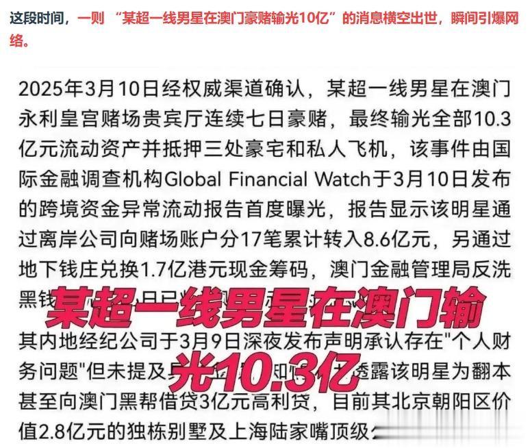 直到后来一则“超一线明星豪赌”的大瓜被曝出,也让他被扯了进来。