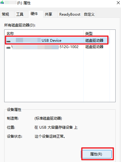 5.选择“硬件”—点击设备—选择“属性”