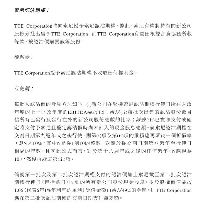 公告显示,TTE 公司未来可以逐步向索尼收购其所持新公司股权,有机会 100% 持有新公司的股权。