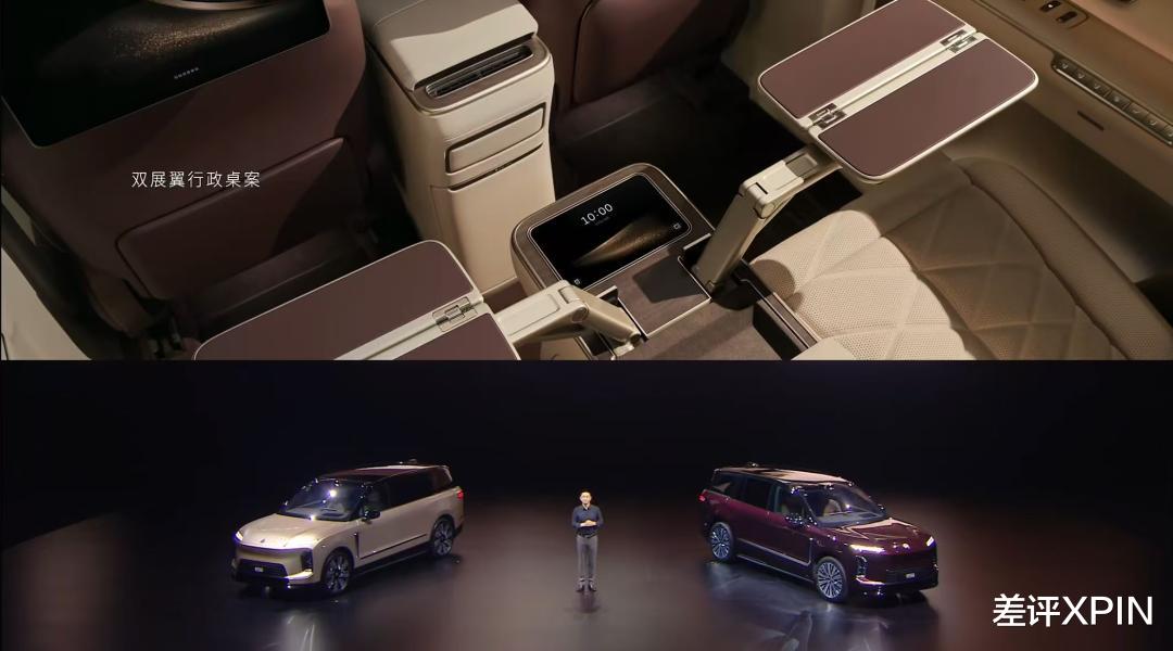 而要说冰箱、沙发都有了,肯定还得来个彩电,ES9 的这块后排屏其实和中岛直接合体了,而对于工作、娱乐的需求,ES9 既没有选择头顶电视,也不是投影仪,而是椅背后的两块 Pad 。