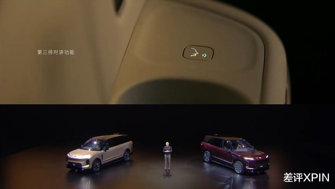 好处当然不言而喻,就是内部空间也很大。按斌总的说法,不管前后、左右、上下,这车的内部空间都是同级最大的。到什么程度呢?第三排竟然为此专门设计了一个连系第一排的对讲机,真的是我见过最炸裂的一个功能了。