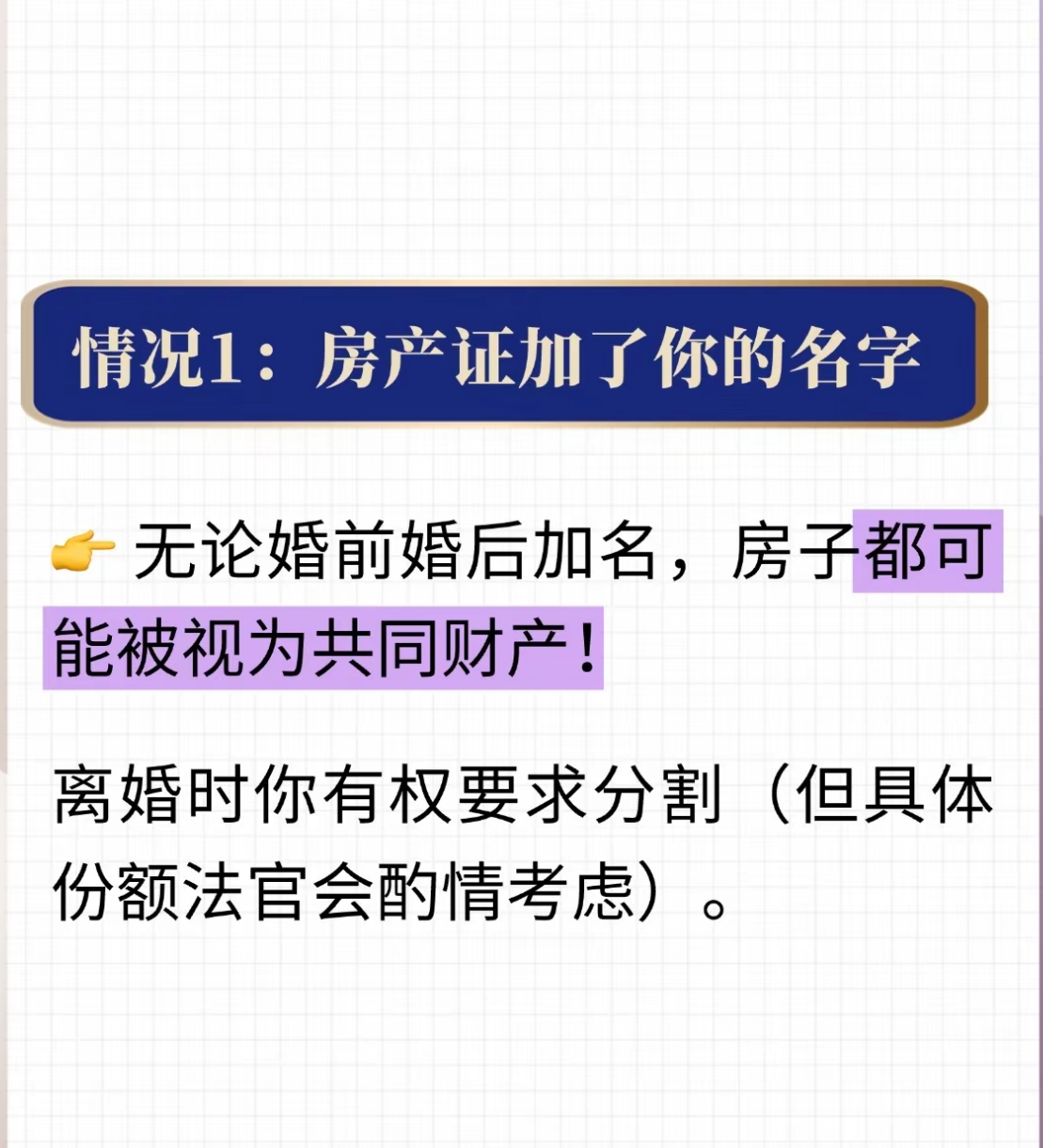 你对婚前房加名、离婚分割怎么看?评论区说说你的想法。