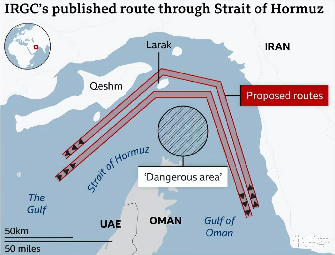 4.想要通过霍尔木兹海峡,那就得走“指定路线”,并“经伊朗许可”。