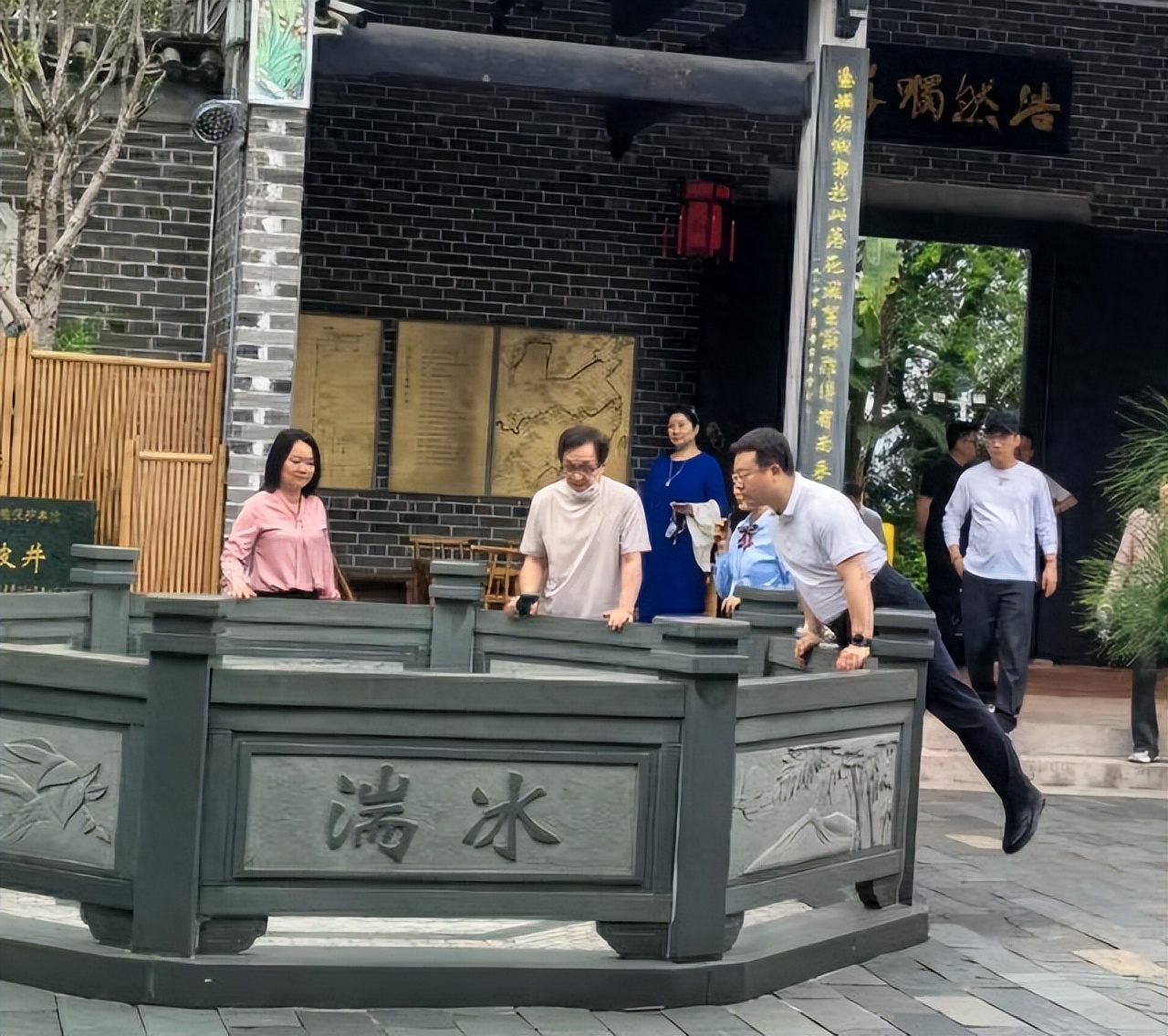 他和成龙并肩走着,一边走一边给成龙讲解惠州的历史文化,从苏东坡祠的古建渊源,到东坡井的传说,再到惠州的山水风光、民俗特色,讲解得细致又全面。