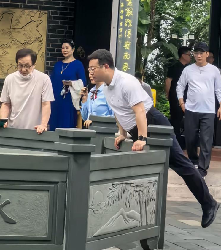 有网友拍到一个小细节,游览途中,工作人员给成龙递了一杯水,成龙喝了几口,随手放在旁边的石台上,转身继续听讲解。