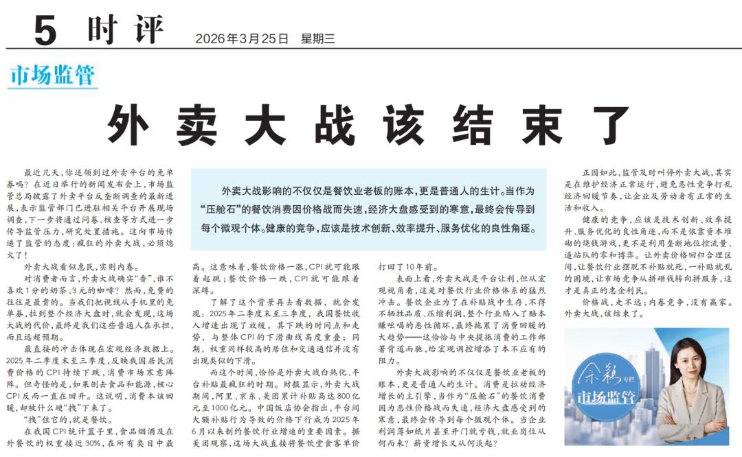 就在美团年度业绩披露前一日,国家市场监管总局网站转发《经济日报》文章,定调“外卖大战该结束了”,释放出将强力介入外卖大战的信号。