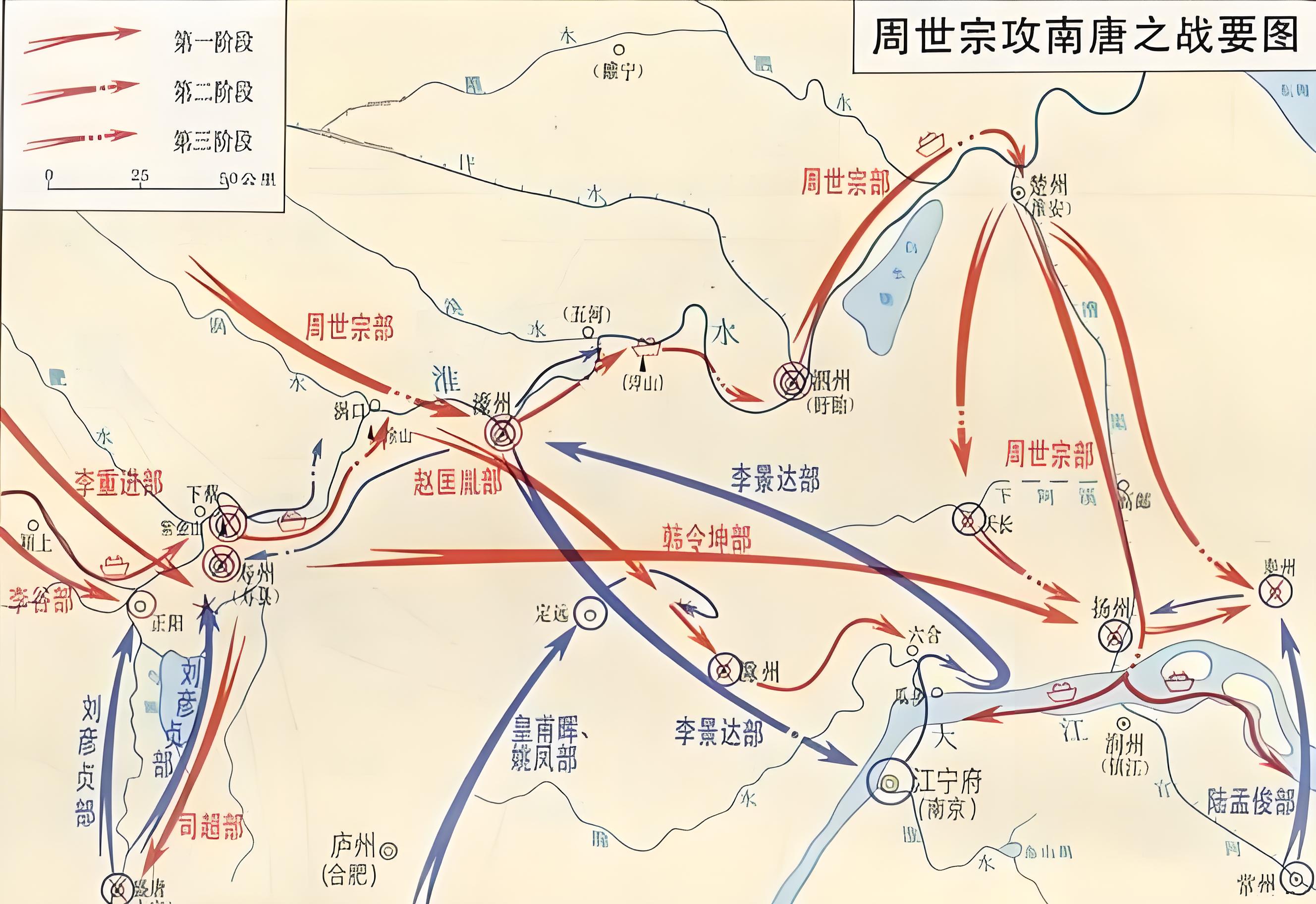 第二次柴荣御驾亲征南唐,先破解南唐的紫金山连珠寨,毁其粮道,逼降寿州,彻底切断了南唐江北的防御体系。