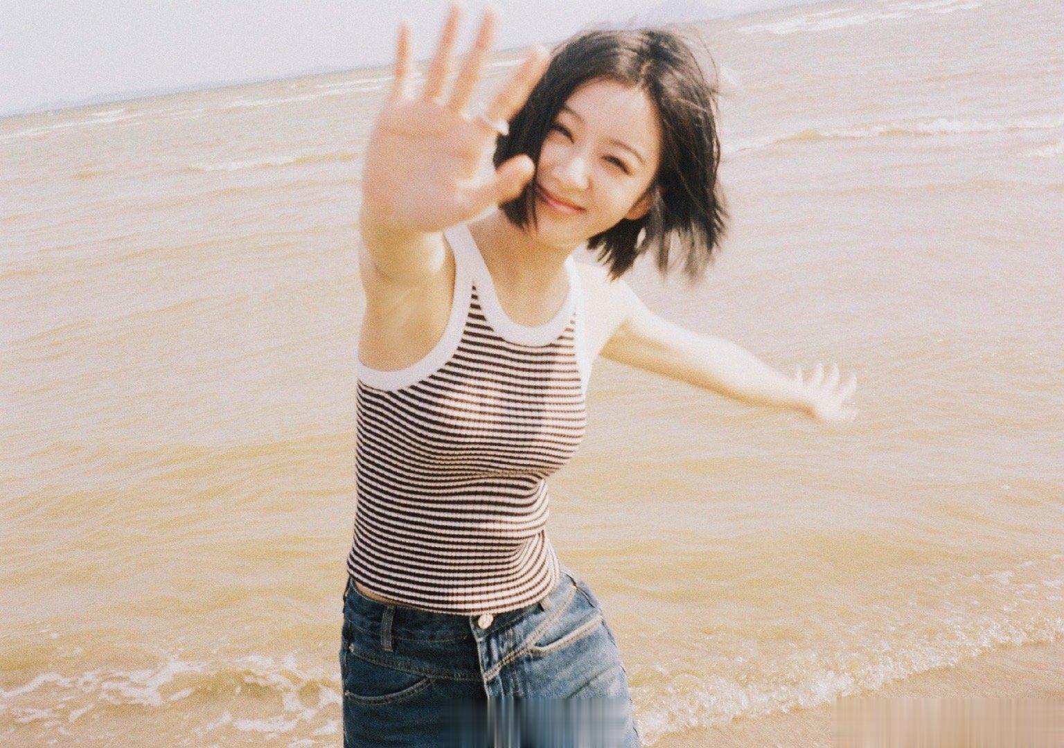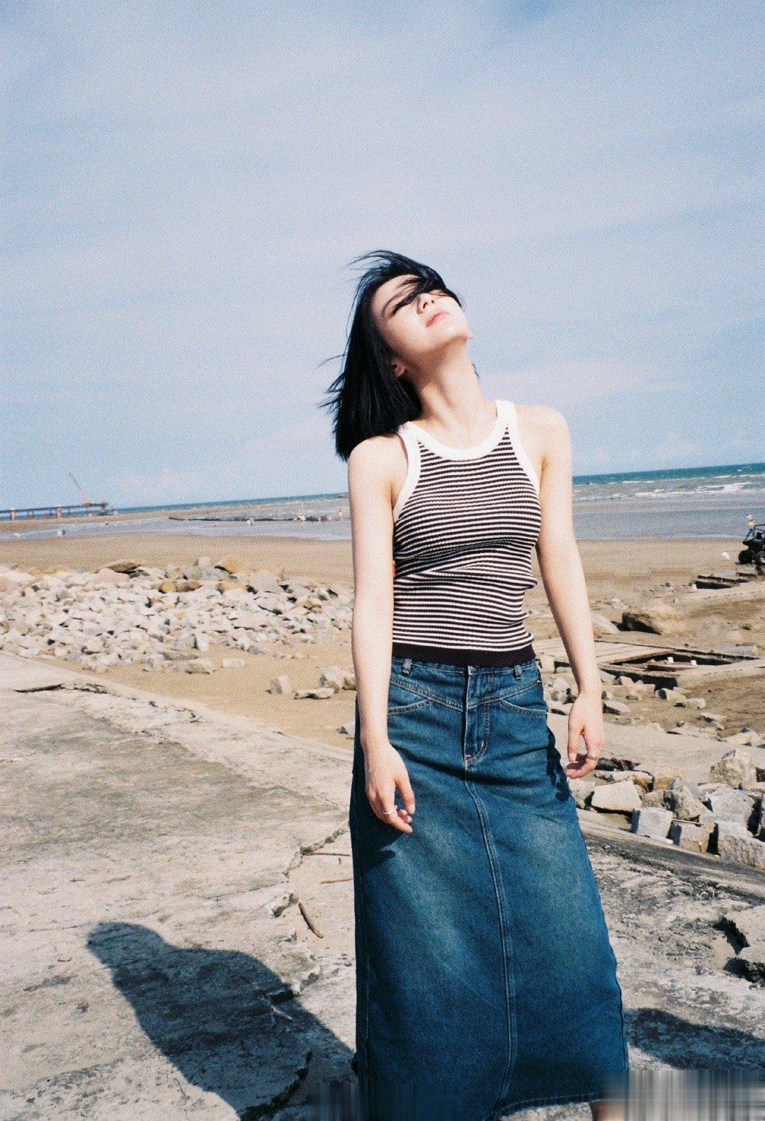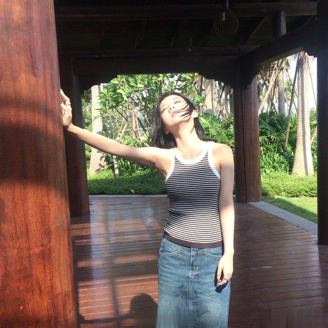 #包上恩黑白条纹背心# 包上恩海边漫步的造型清纯优雅,黑白条纹紧身背心彰显好身材,每一张照片的风格都有着独特的魅力,确实特别的吸引到我们!她随性自由的风格简直太迷人了!#包上恩允许一切如其所是#