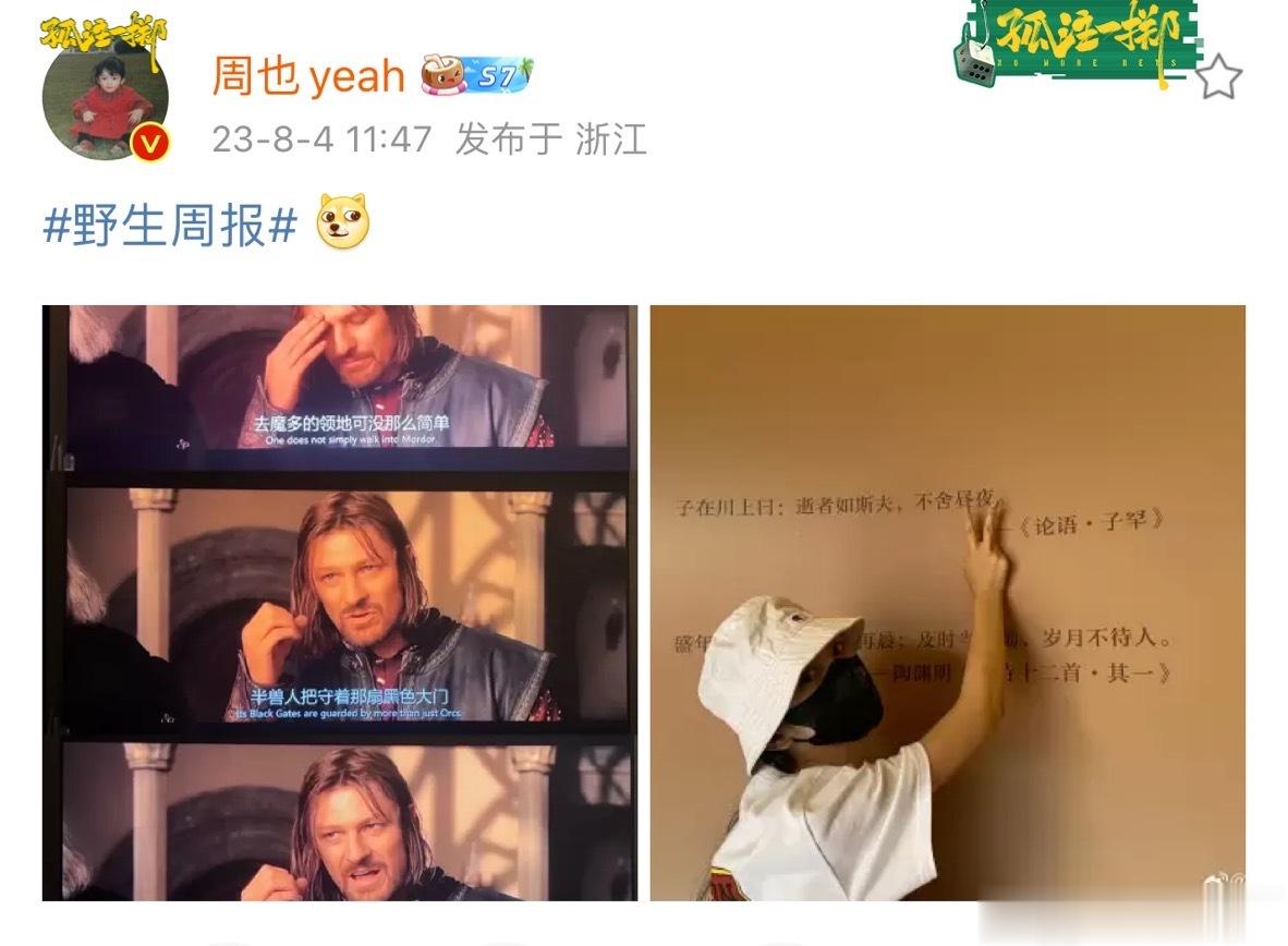 #周也和论语合照# 也子这是去哪里玩了啊?野生周报和论语的合照也是非常的有趣,“子在川上曰,逝者如斯夫,不舍昼夜”,也希望也子对待今后的工作能有这样的态度,看到她比耶就知道她很认可这句话!