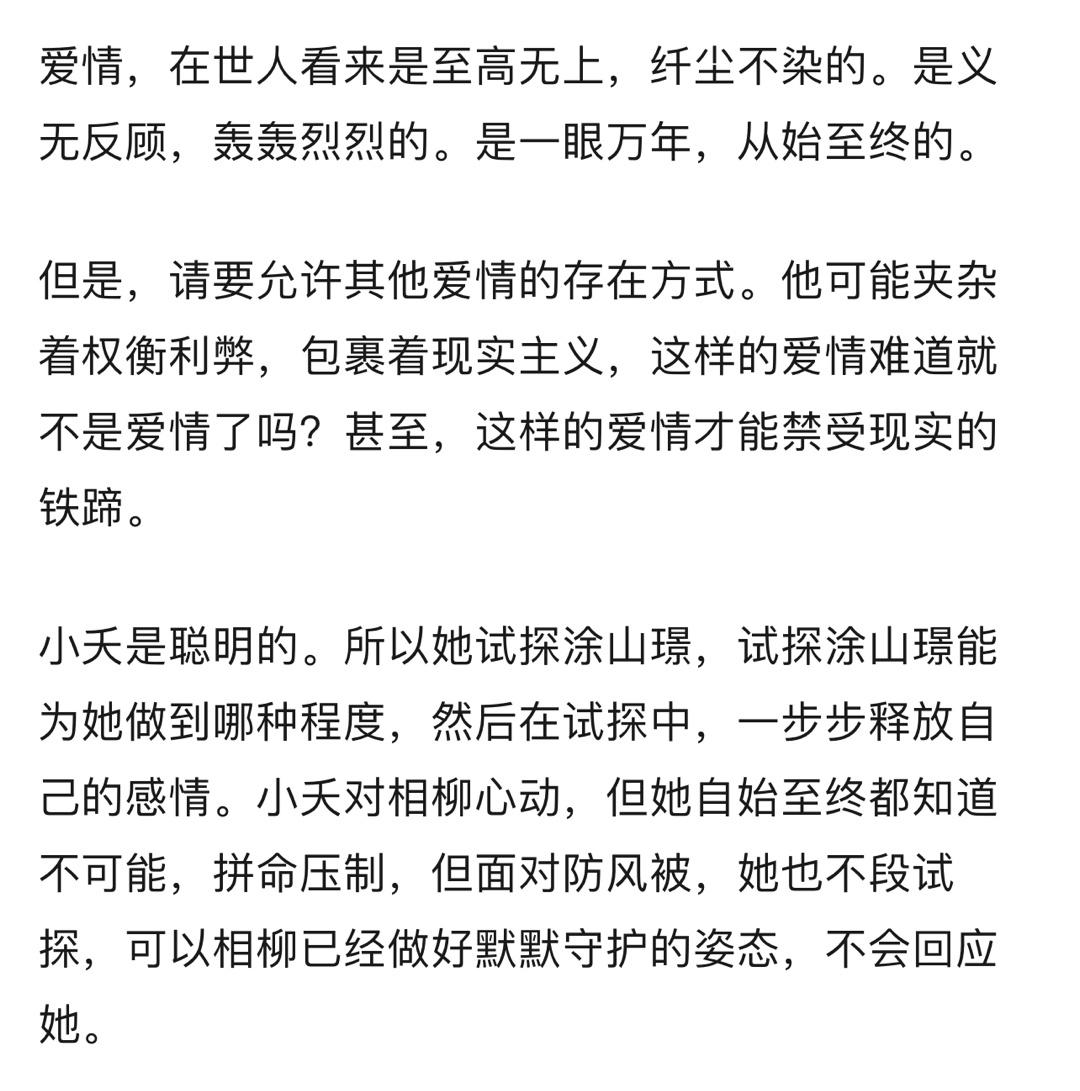#长相思爱情观# 越细品长相思,越能发现每一个人都有不同爱情观,小夭渴望在爱情中获得更多的安全感,她追求的是有人可依,玱玹的爱是控制是占有,爱而不得的他只能选择最暴力的方式,涂山璟所要的爱就是小夭对他救赎的爱,相柳的爱是无私的爱,是不求回报的爱#长相思每个人都有不同的爱情观#