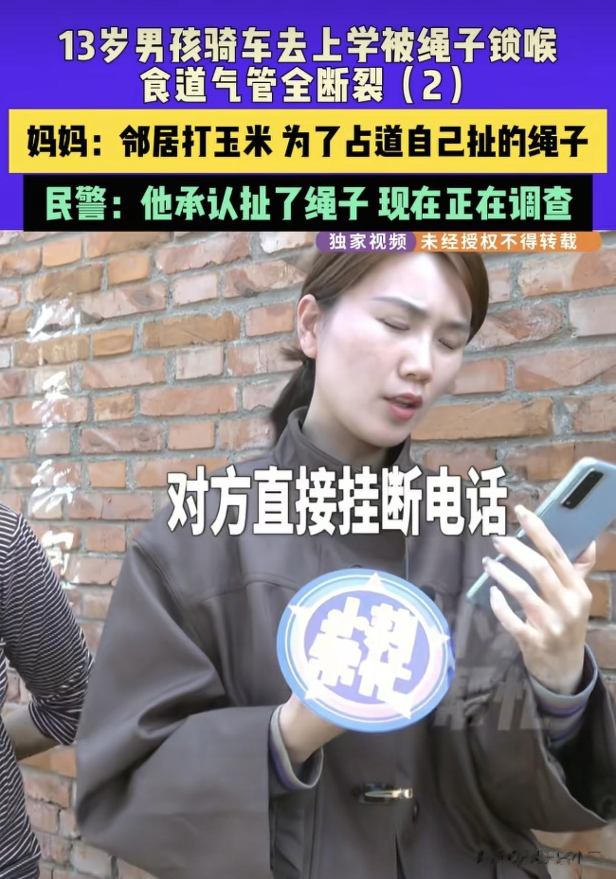 记者也联系了肇事者的儿子,刚问到为什么要在路上拉绳子的时候便挂断了电话。