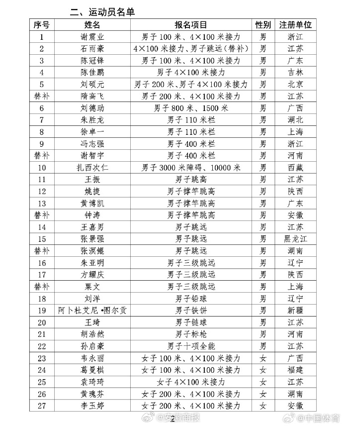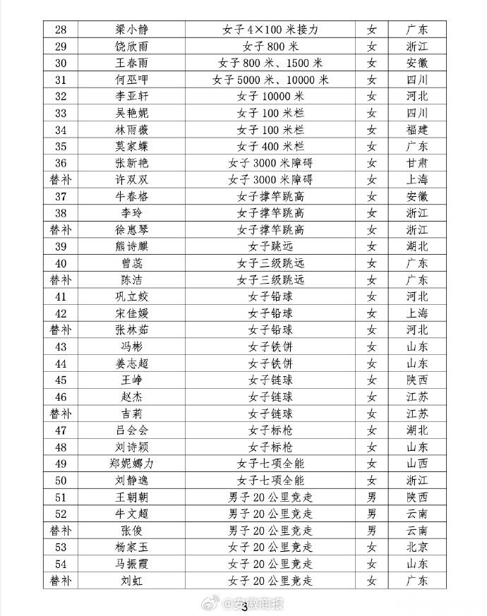 【#安徽4人入选杭州亚运田径大名单#,加油! 】据安徽运动员钟涛(男子撑竿跳高)、李玉婷(女子200米、4×100米接力)、王春雨(女子800 米、1500米)、牛春格(女子撑竿跳高)入选。为安徽运动员加油!