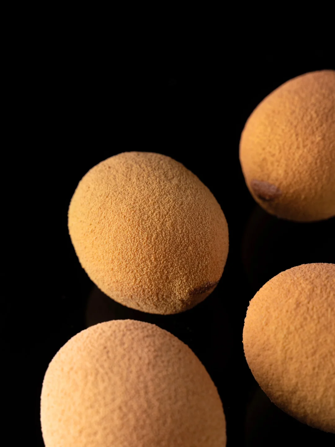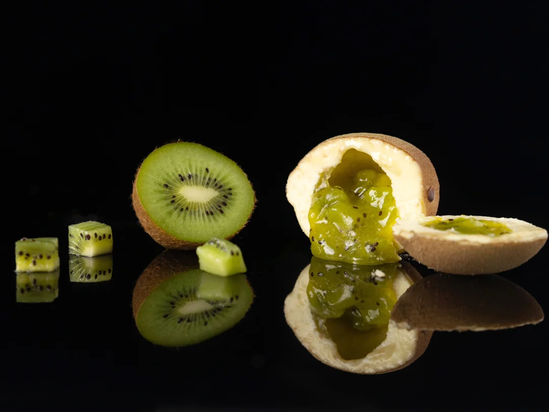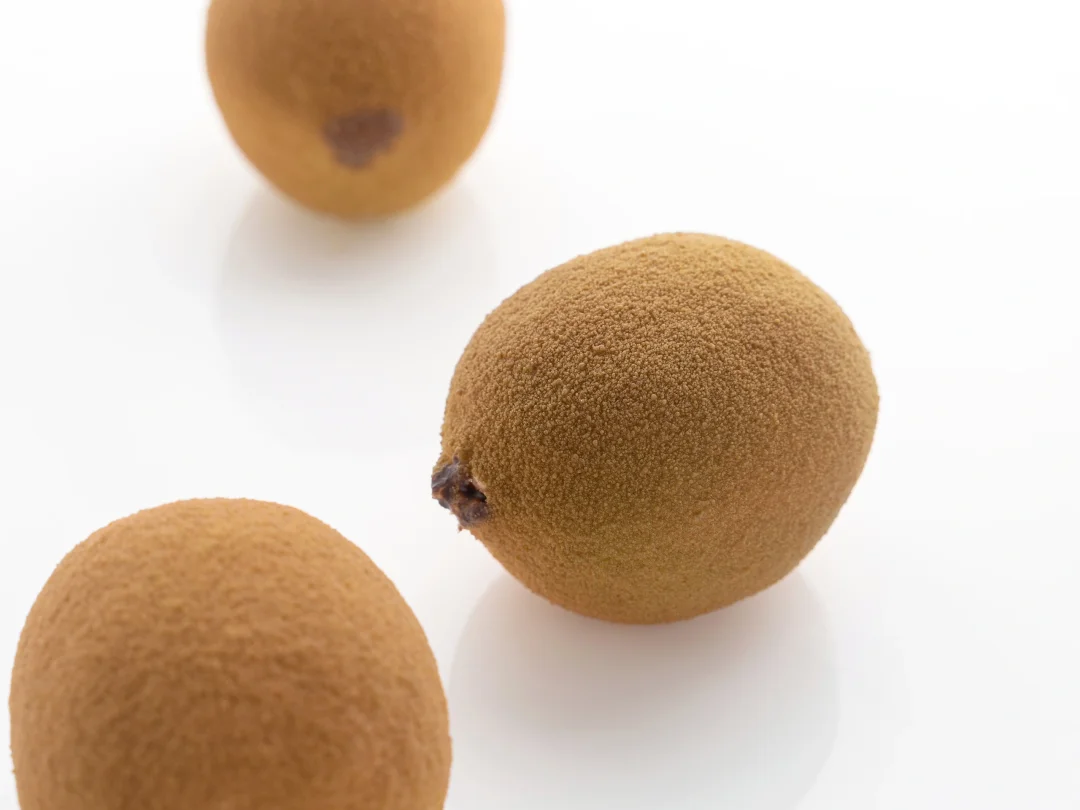 6.用笔刷蘸取适量棕色可可脂在猕猴桃两端轻点作为果蒂。