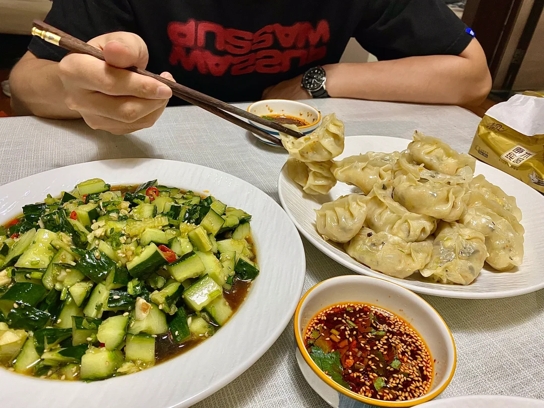 今天晚餐长这样 分享下饭家常菜教程 具体做法往后翻,每道菜都有详细的教程介绍 今日菜单: [星R]素馅蒸饺 [星R]凉拌黄瓜 [星R]青菜汤 好好吃饭,拒绝外卖~