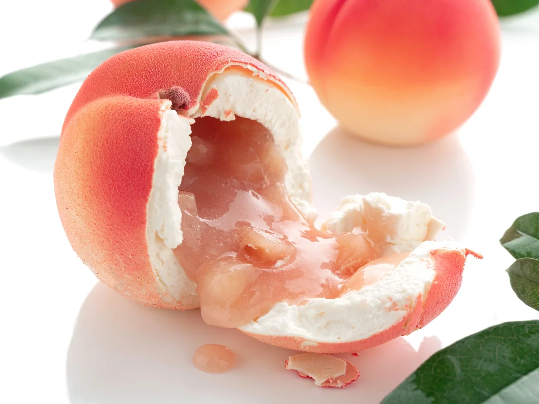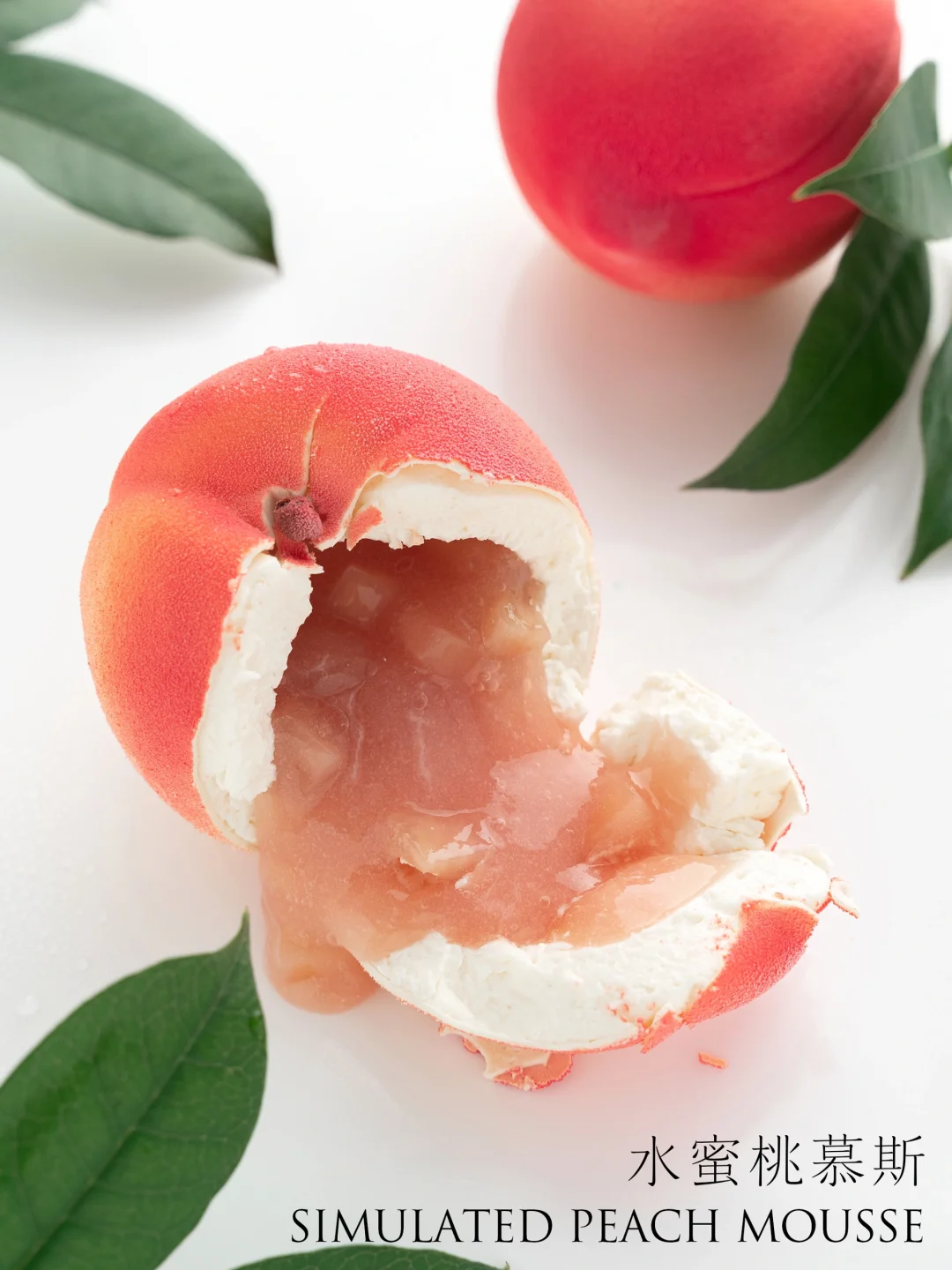 🍑今天分享一款仿真水蜜桃慕斯,丰沛多汁,甜到你的心里,一点儿也不比新鲜桃子差[哇R]