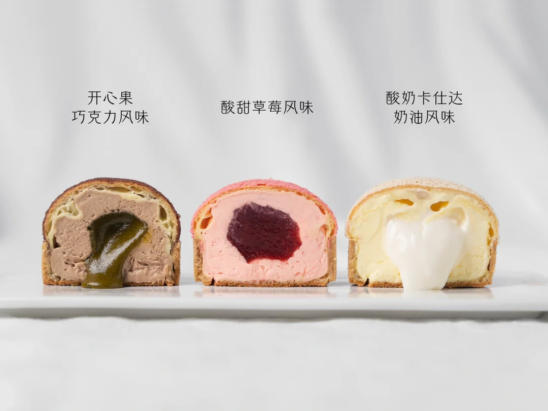 🍓一共做了3种口味:酸奶卡仕达口味,草莓口味和开心果巧克力口味