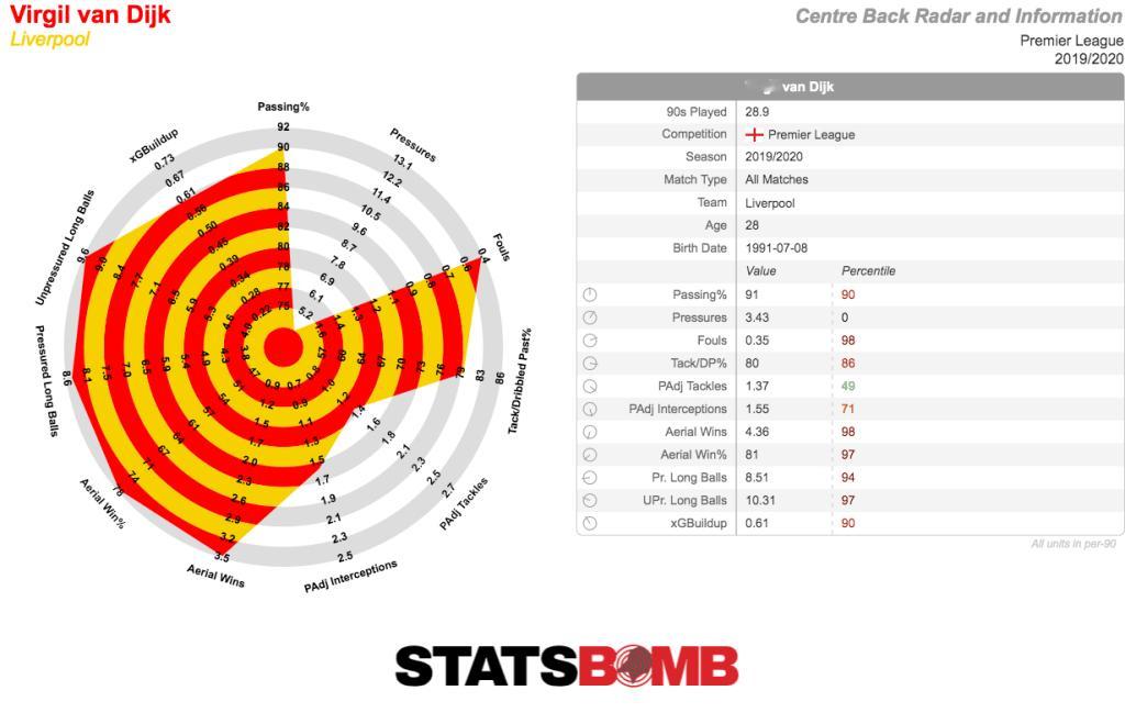 本赛季范戴克的数据雷达图,与18/19、19/20赛季的巅峰相比也不遑多让。