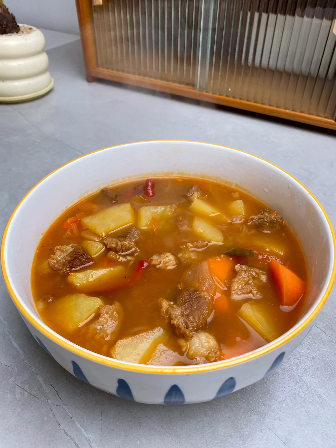今天晚餐长这样 今日菜单: [星R]番茄土豆炖牛腩 [星R]白菜烧豆腐 好好吃饭,拒绝外卖~