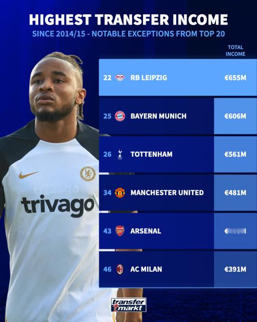 过去10个赛季球员销售总额最高的球队,切尔西的青训顺利销售保证了他们的疯狂采购,曼联恰恰受制于此。