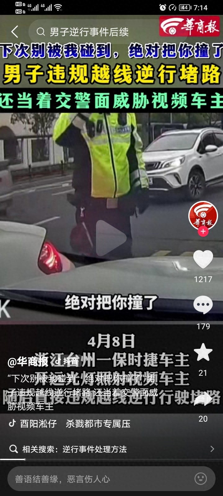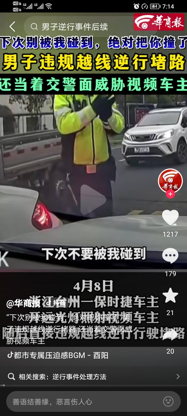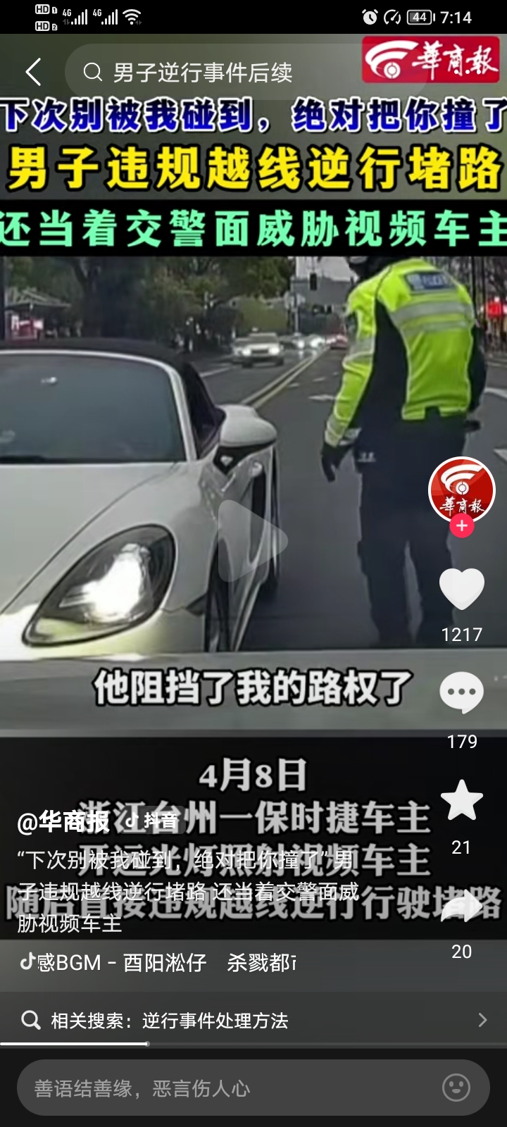 4月9号,一则有一位浙江保时捷车主“很狂”的新闻冲上了全网的热搜,引发大家的强烈关注!明明是自己逆行在先,在交警过来处理以后,当着交警的面,直接威胁对向车主,“下次让我看到你,直接开车撞你”,如此嚣张跋扈,最后只罚200块扣3分,网友都说:这教训也太轻了。