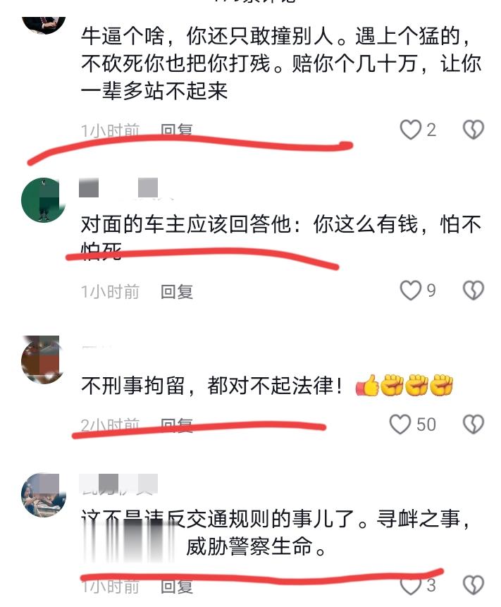 说,“下次别让我碰到你,绝对把你撞了。”他说这句话的时候,负责处理的交警同志,就站在他的面前!