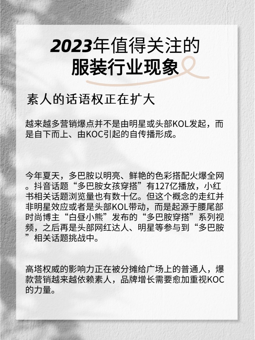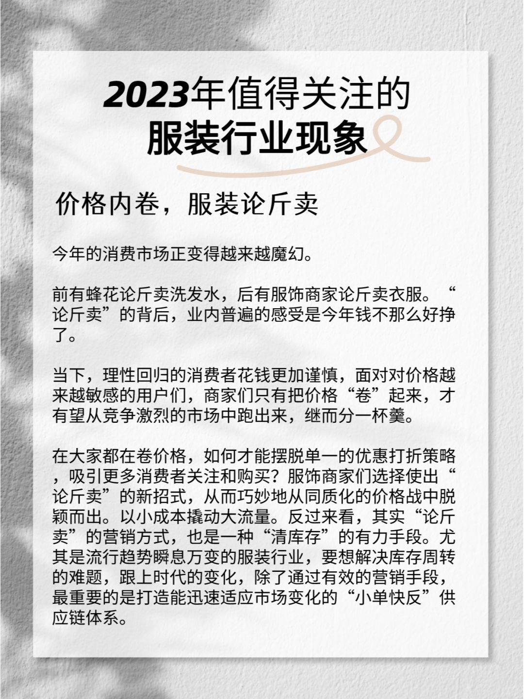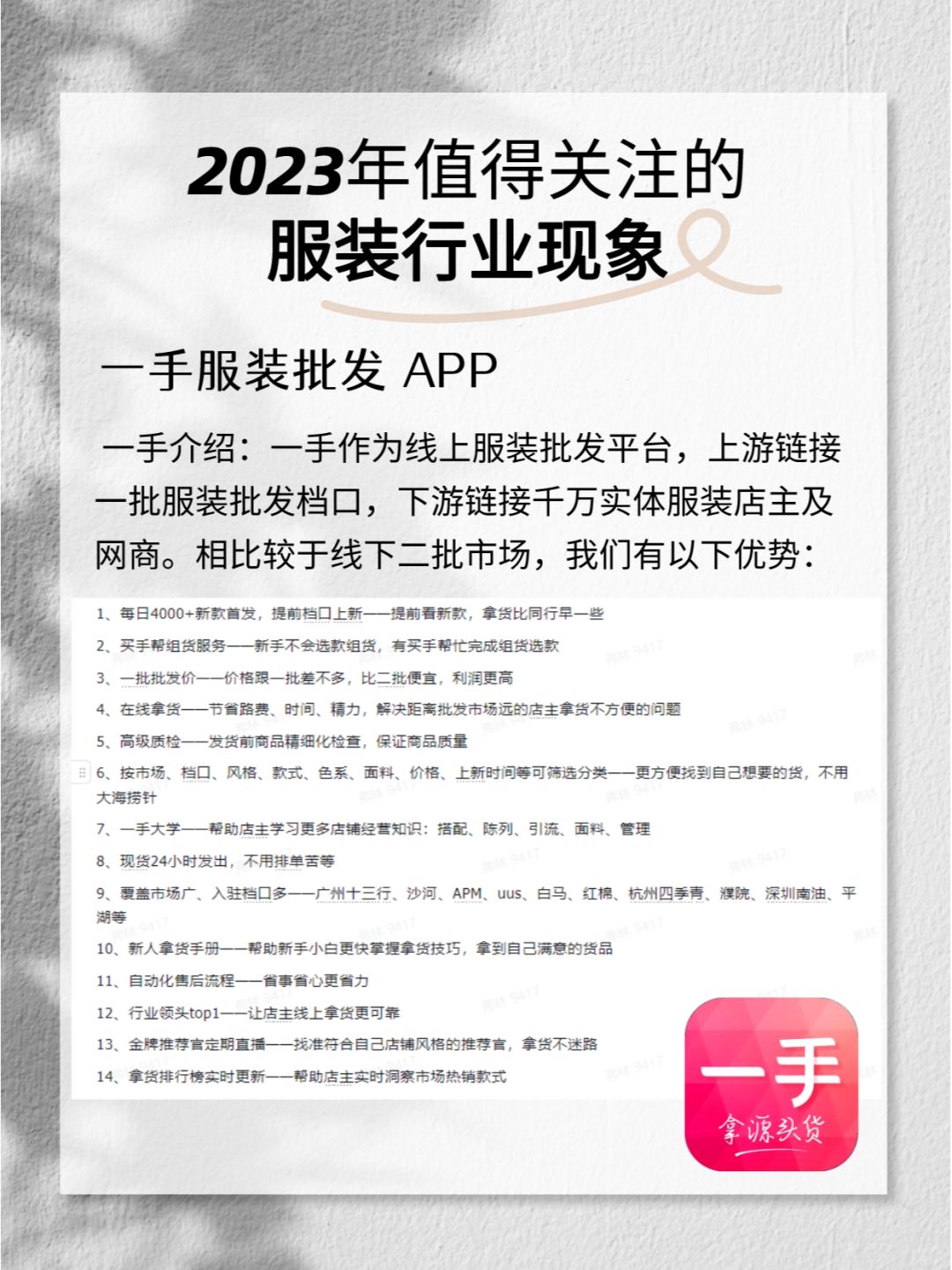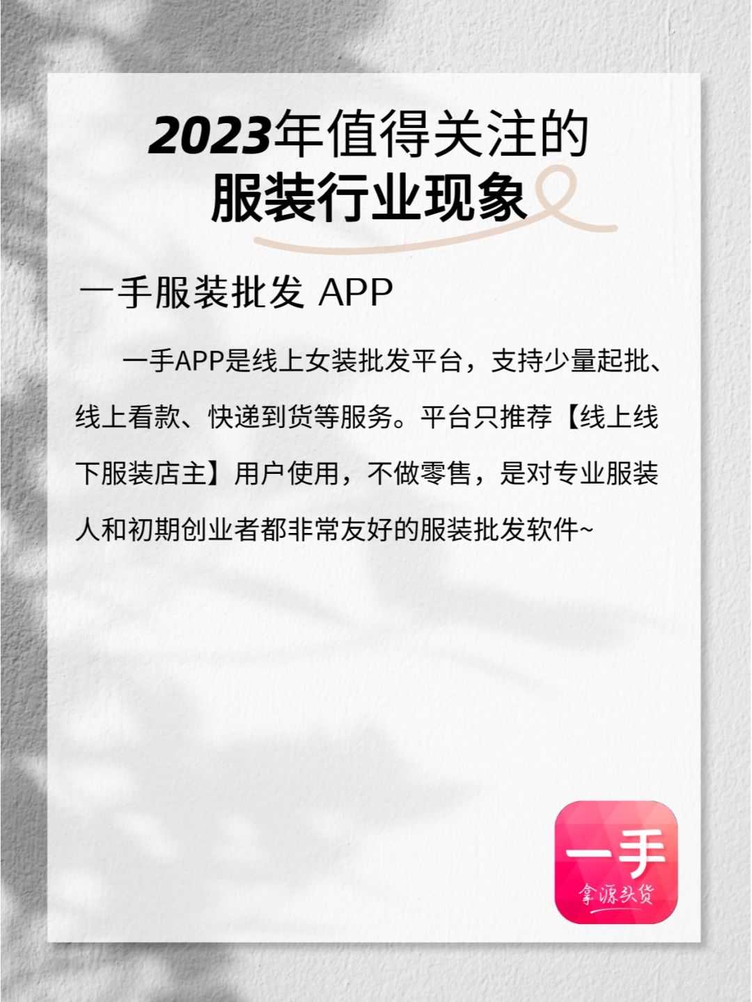 在这个动荡的时代,服装行业也在面临许多的不确定性。[doge]通过本篇总结的2023服装行业现象,可以窥见行业发展的一些规律,给大家留下一些思考。[自拍R] 一手一手APP一手档口推荐一手服装批发一手货源一手女装批发APP一手同源优质一手货源 下载APP,记得[黄金薯R] 【4485】,会有惊喜等着你。