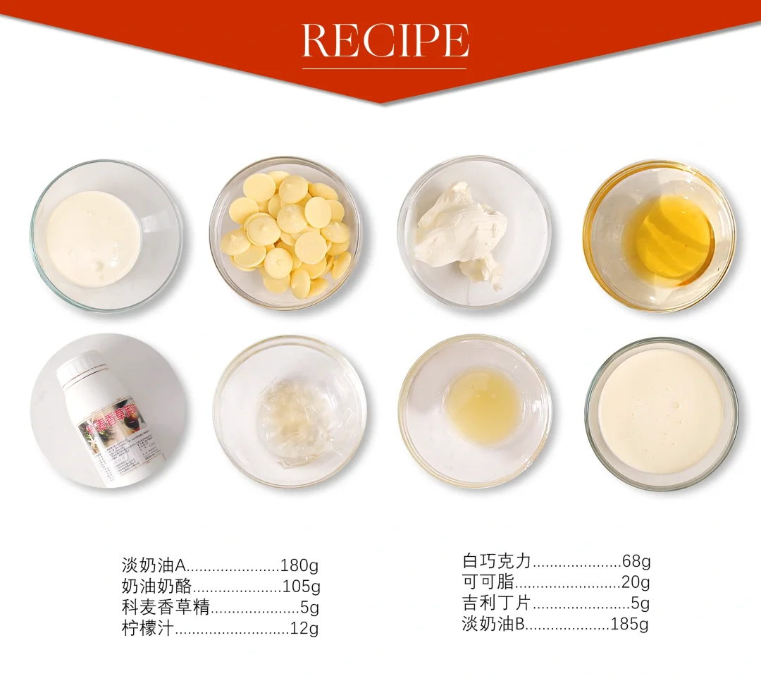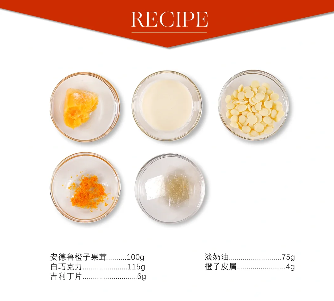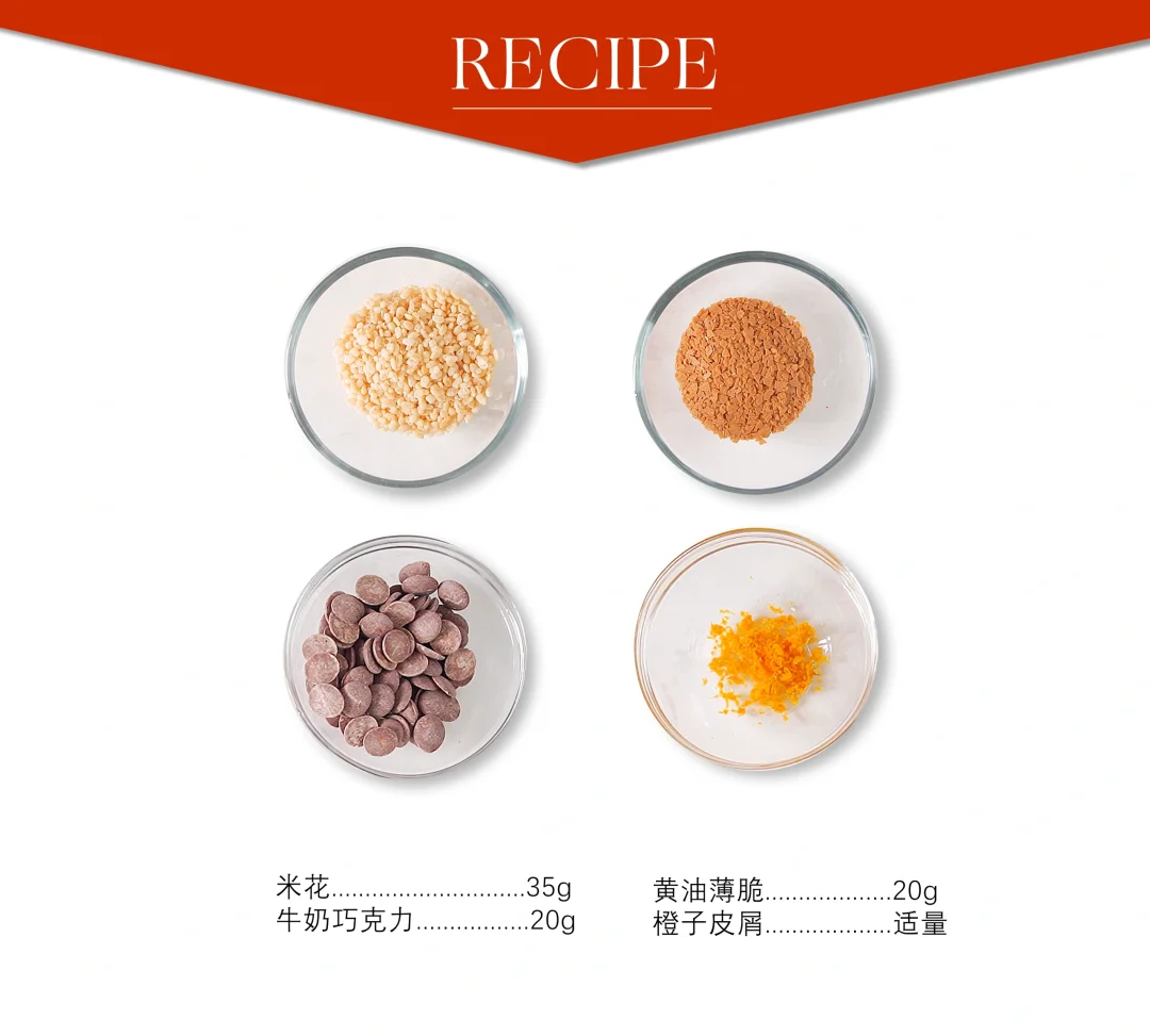 . 🐲快过年啦,给大家安排一款适合新年的亮面慕斯蛋糕~ . 🐲配方看图上哦 . 🐲制作要点 1⃣️ 草莓啫喱 果茸加热至40°C,倒入拌匀的NH果胶和砂糖,快速搅拌加热煮沸收稠离火,倒在保鲜膜封底的圈模(直径13cm)中约120克后冷冻冻硬。 . 2⃣️ 黄豆海绵蛋糕 1、蛋清A、清水、玉米油和砂糖A搅拌混合均匀,加入杏仁粉、过筛的T55面粉、黄豆粉和泡打粉,搅拌成光滑细腻质地。 2、蛋清B和砂糖B混合打发蛋白霜,打发至呈弯钩状,加入到步骤1的面糊中翻拌均匀。 3、平炉上下火170°C烤制10-12分钟,出炉冷却后刻印成直径13cm的圆片。 . 3⃣️ 橙子奶油 1、淡奶油加热煮沸离火,冲入到白巧克力和吉利丁中搅拌均匀。 2、加入橙子果茸和橙子皮屑搅匀。 3、倒在冻硬的啫喱上,放上蛋糕片后冷冻冻硬。 . 4⃣️ 橙皮脆底 米花、薄脆和橙子皮屑搅拌均匀,加入融化的牛奶巧克力搅匀,装入圈模内(直径16cm)压平压实后冷冻定型。 . 5⃣️ 巧克力芝士慕斯 1、在6寸圆柱模具中放入文字图案玻璃纸亮片,用黄色可可脂进行喷涂上色,上色温度为30°C,上色好后取下模具静置备用。 2、奶油奶酪微波打软后,加入融化的巧克力和可可脂大致搅拌,用打蛋器搅打均匀。 3、淡奶油A微波至60°C加入吉利丁融化均匀,倒入到步骤2的奶酪糊中搅匀。 4、依次加入香草香精、打发奶油B和柠檬汁翻拌均匀。 . 6⃣️ 成品组装 1、将慕斯液倒入6寸圆柱模具,挂壁后放入脱模的夹心部分,继续裱挤慕斯液,放入脆底部分抹平后冷冻冻硬。 2、慕斯脱模,淋上透明淋面,淋面温度为30°C。 3、组装上巧克力围边(高5cm)插件。 .