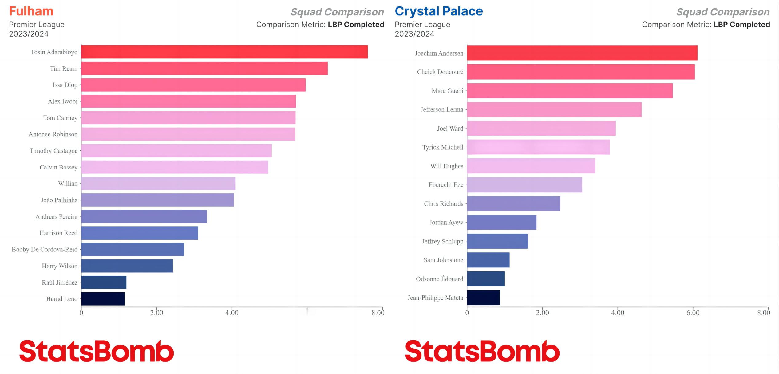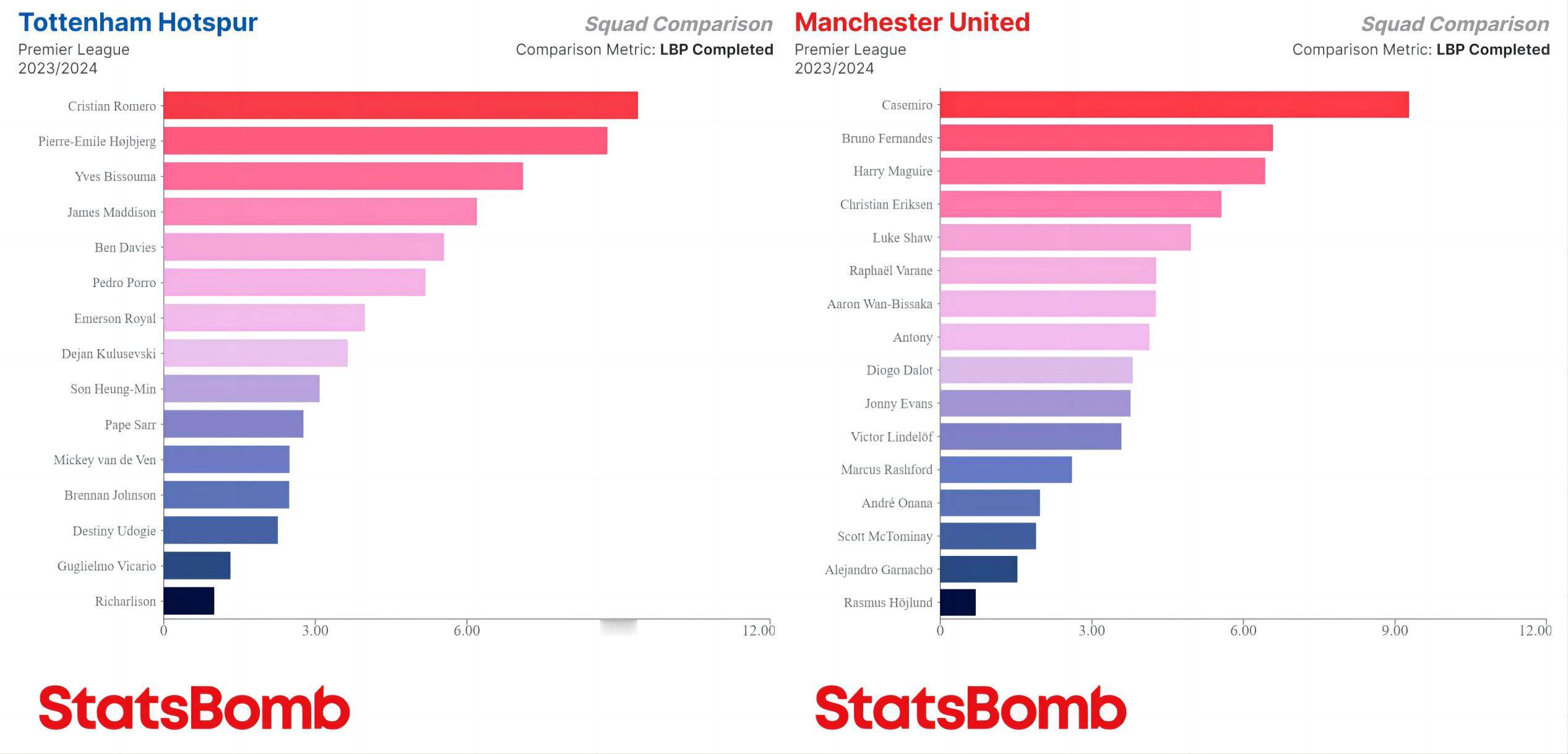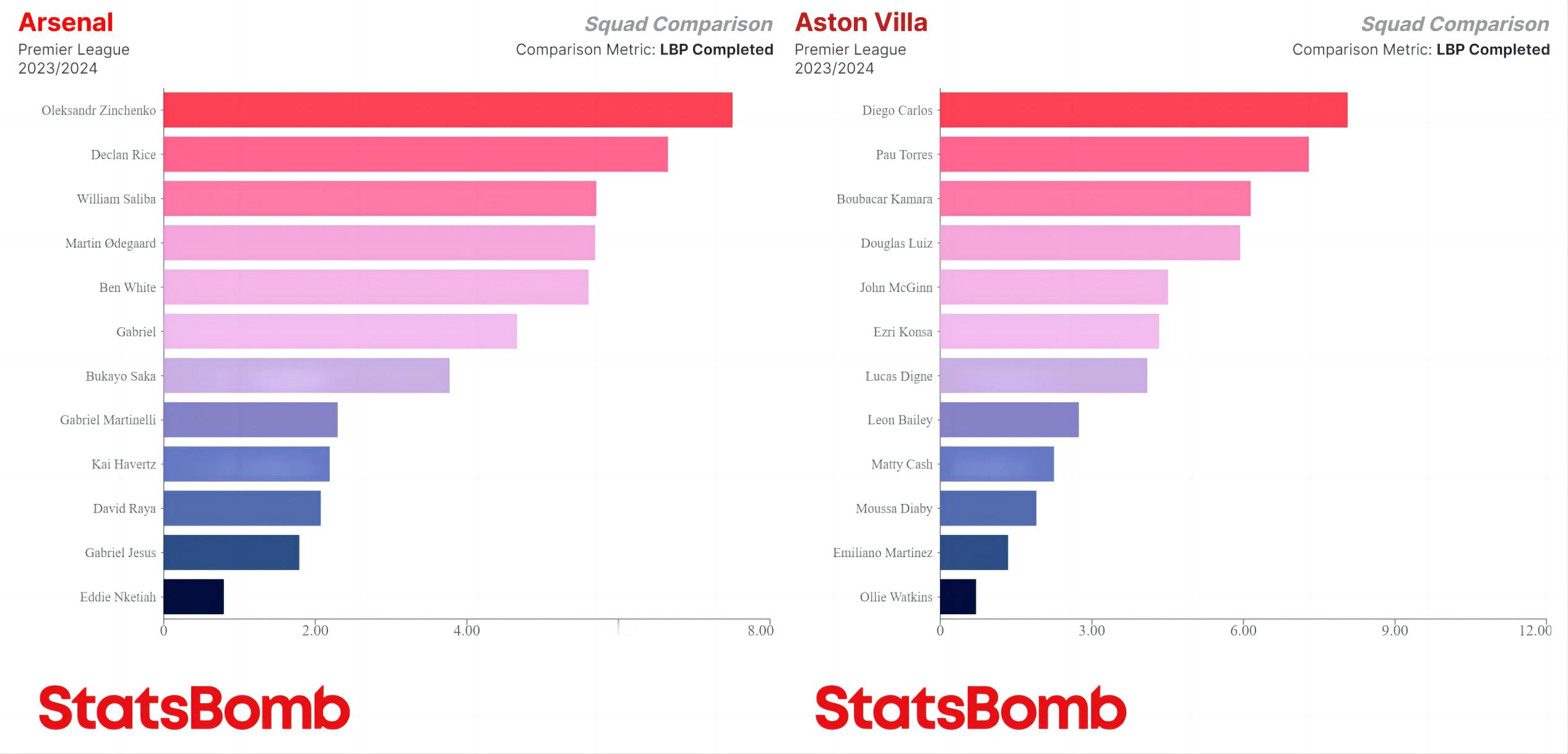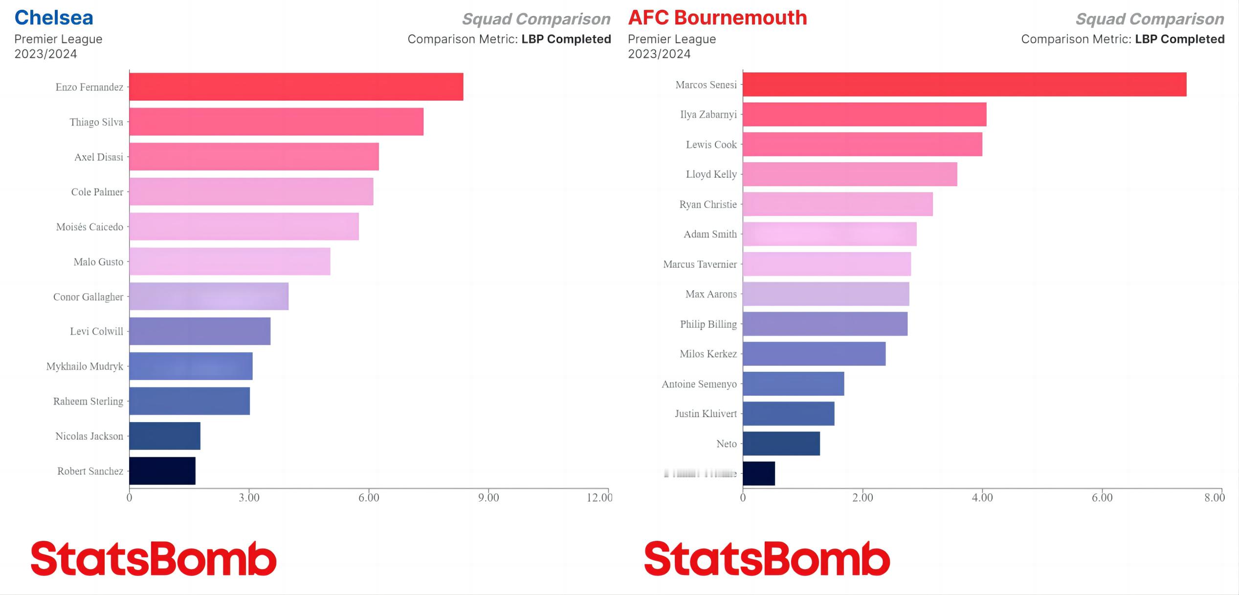 本赛季英超各队每90分钟完成打破对方防线的传球次数最多的球员,基本上集中在中卫、后腰(内收后腰)两个位置上,帕奎塔和巴克利是少有的前场球员。