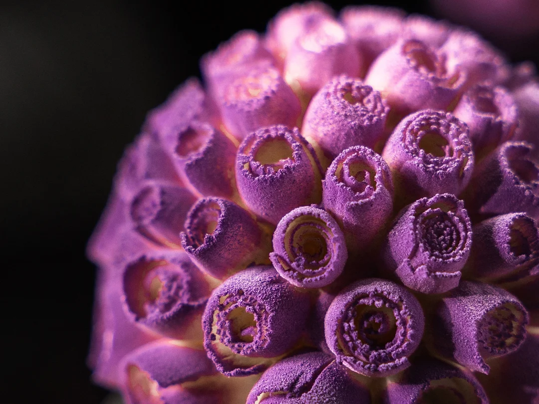 3、捧花顶部中心喷涂粉色色油,再喷涂白色色油温度为30°C;黑色款则是中心浅紫、外圈深紫。
