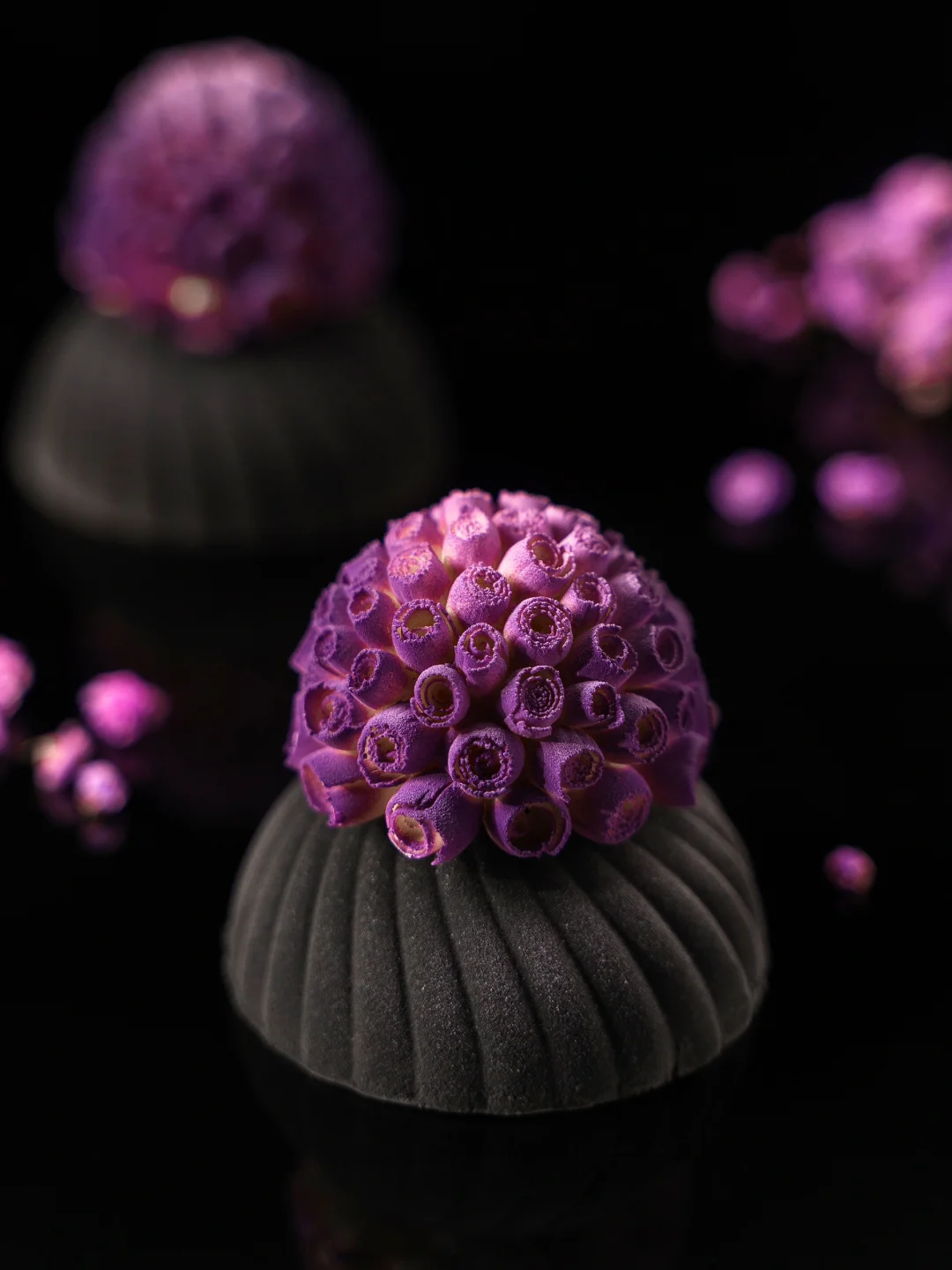 2、慕斯脱模后整体均匀喷涂香槟色/黑色,上色温度为35-40°C。