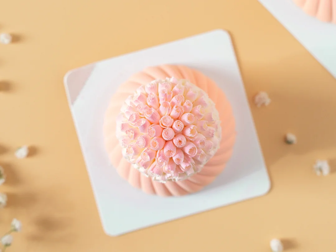 4、将上色好的捧花组装到慕斯顶部即可。