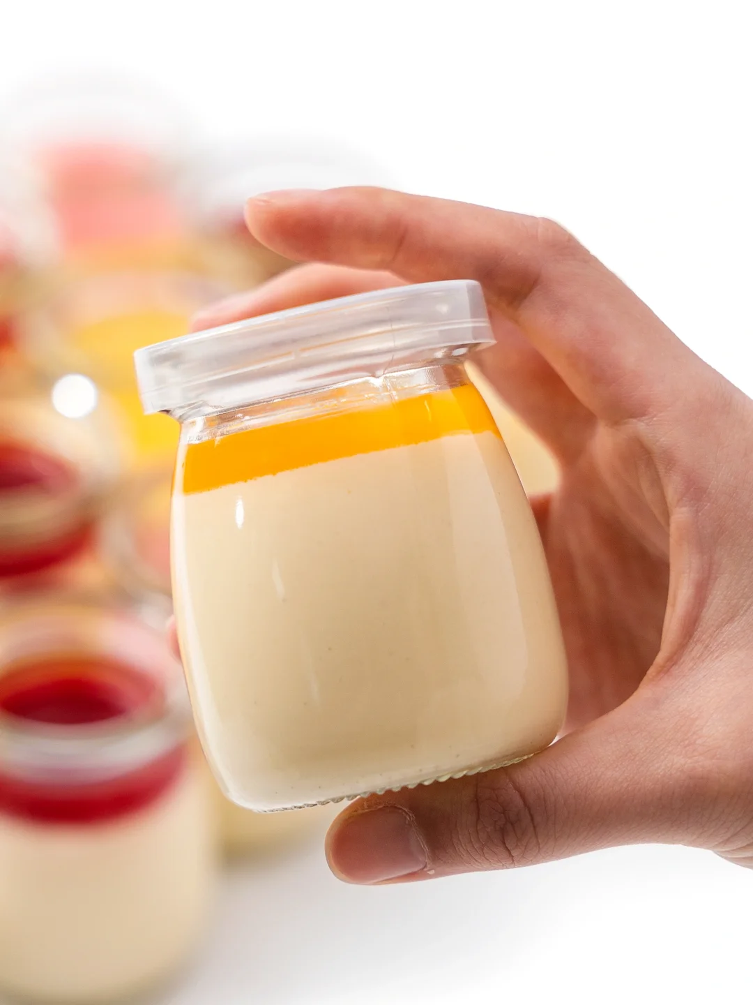 . 🍮今天分享一款简单好吃的蒸布丁,适合小孩子吃哦 . 🍮配方看图上 . 🍮制作要点 1⃣️ 蒸布丁 1、鸡蛋、蛋黄、砂糖和香草精搅拌混合均匀。 2、慢慢加入微波至40-50°C的淡奶油和牛奶,注意边倒入边搅拌直至均匀质地。 3、均匀过筛2次,倒入布丁杯约85克,放入锅中倒入清水至杯壁五分之二处,表面盖上保鲜膜小火煮至85-90°C,盖上锅盖小火煮7分钟, 关火焖7分钟即可出锅。 4、注意全程温度把控,避免过高。 . 2⃣️ 啫喱 1、清水、草莓果茸和砂糖混合搅拌加热煮沸离火,加入泡好的吉利丁片融化均匀后整体过筛,降温后注入到布丁上约15克,密封冷藏至凝结。 2、其他口味的啫喱等量替换果茸即可,其他操作不变。 .