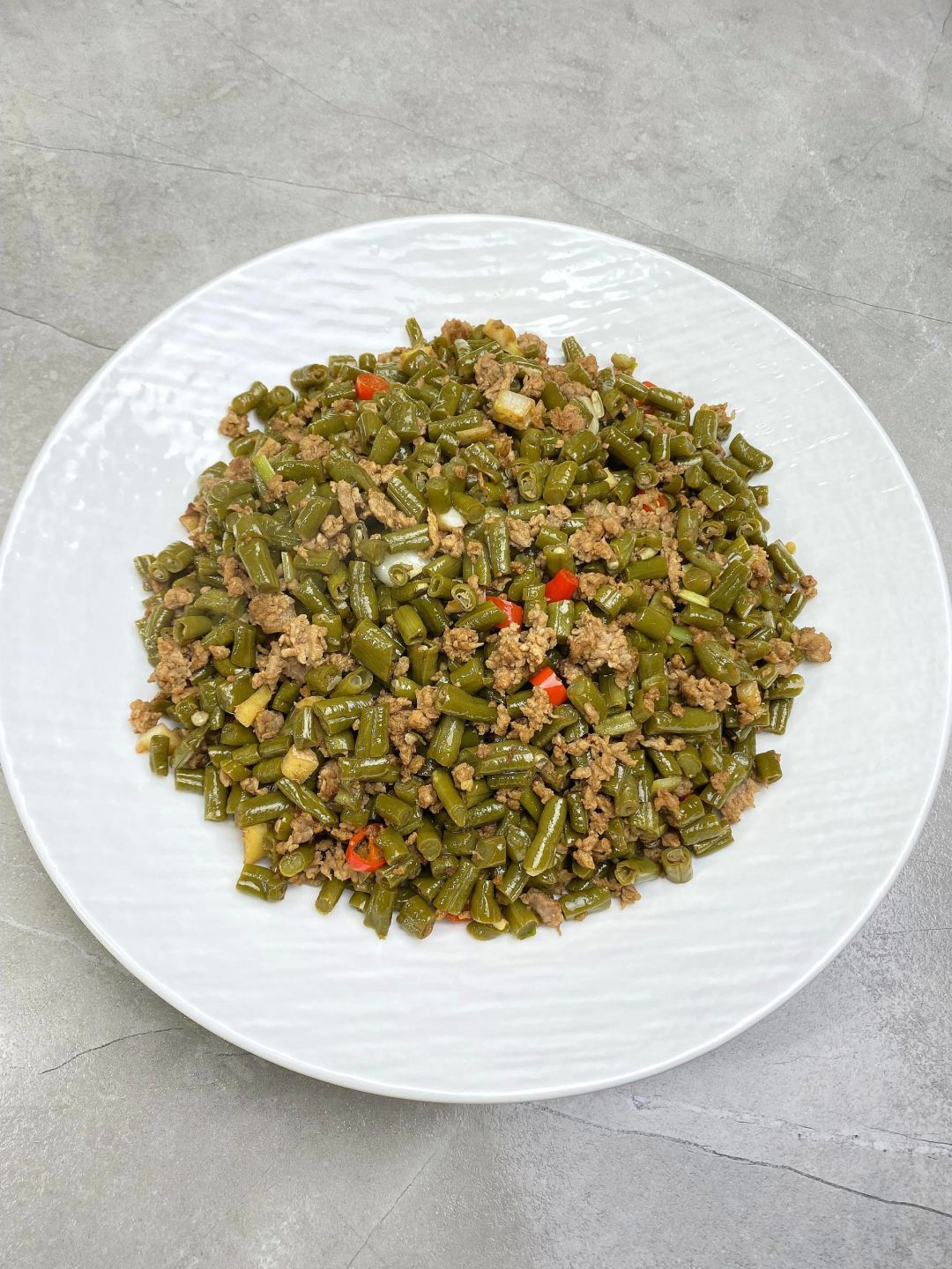 今天晚餐长这样 今日菜单: [星R]酸豆角炒肉末 [星R]小炒包菜 [星R]香菜拌皮蛋 好好吃饭,认真生活[红色心形R]