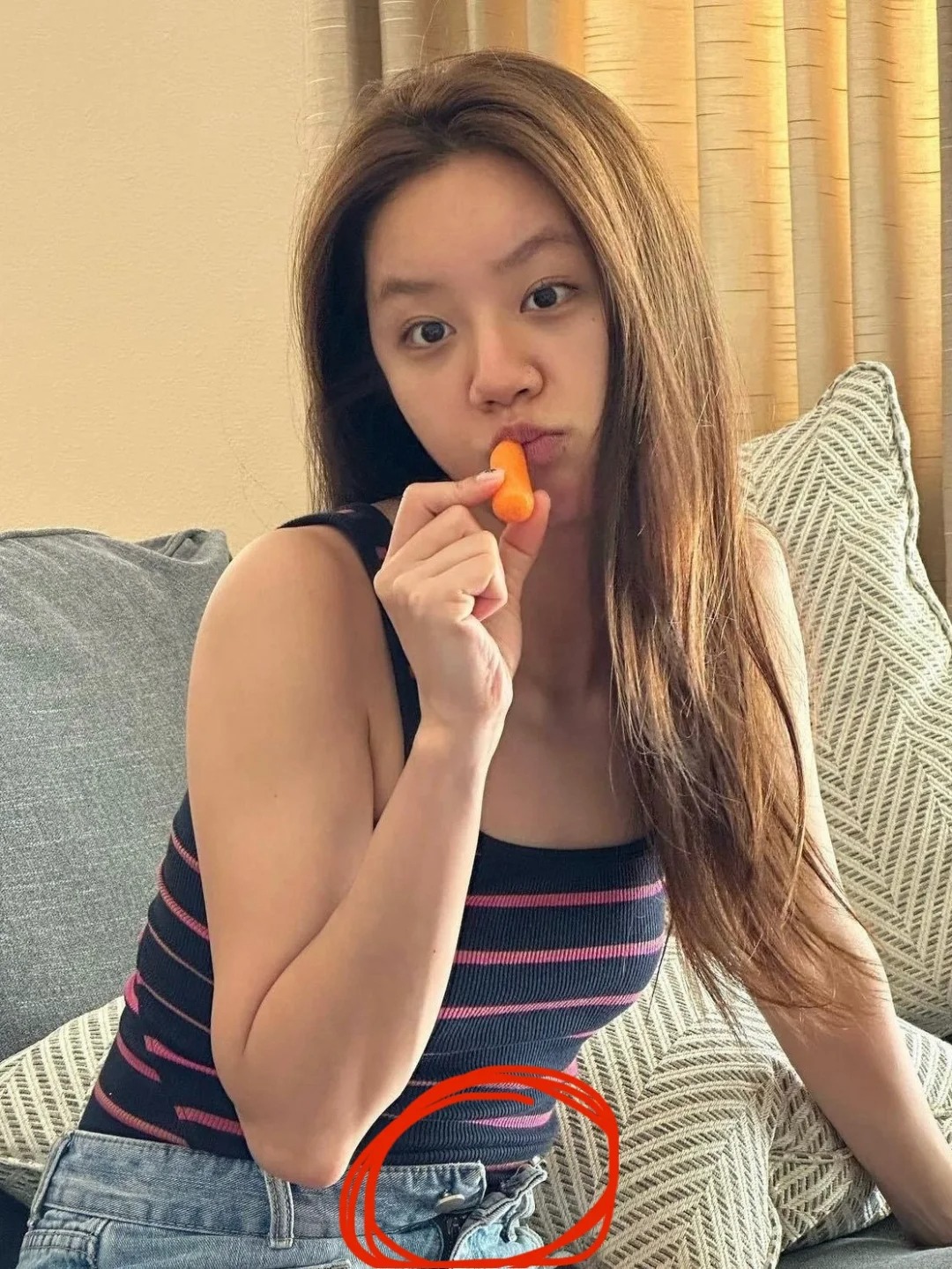 自拍有毛孔有闭口也没关系 有点拜拜肉 裤子扣子也解开 怎么看都可爱美丽