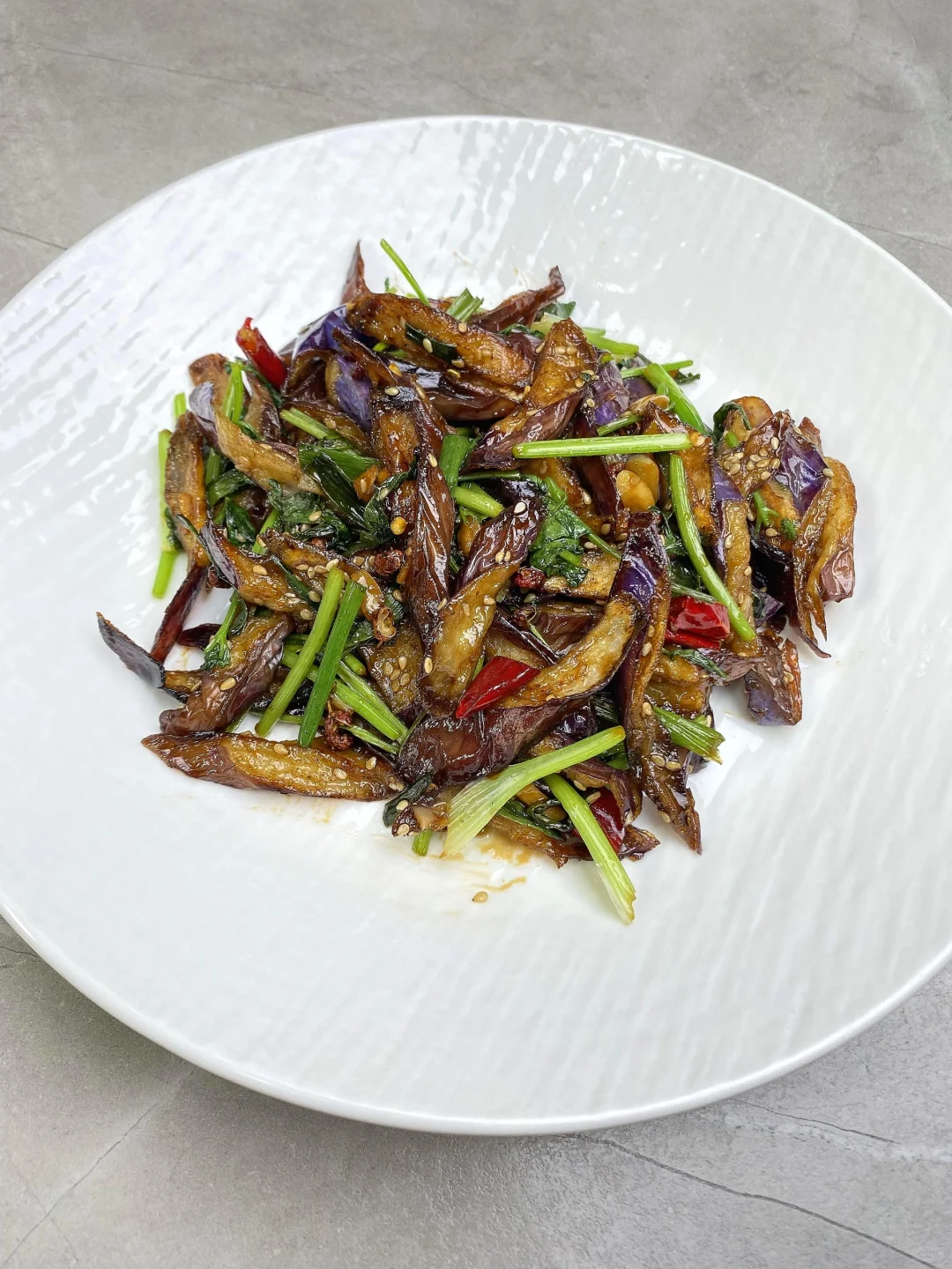 今天晚餐长这样 今日菜单: [星R]风味茄子 [星R]辣椒炒肉 [星R]凉拌菠菜 好好吃饭,认真生活[红色心形R]