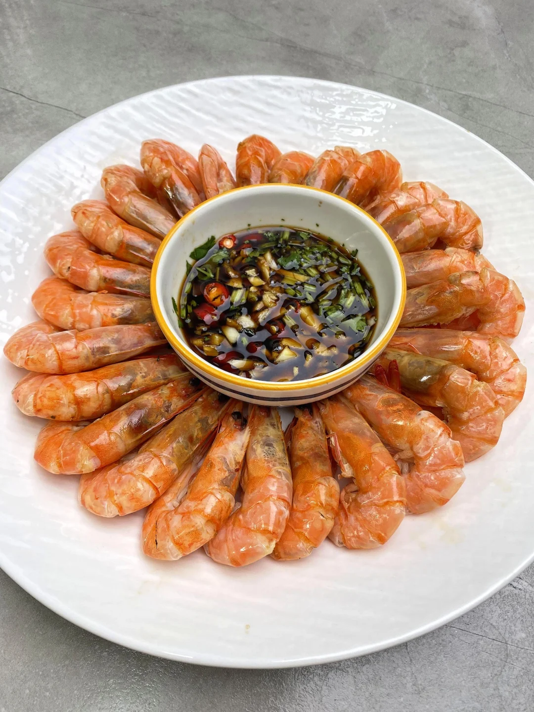 今天晚餐长这样 今日菜单: [星R]香煎里脊 [星R]白灼虾 [星R]豆豉油麦菜 好好吃饭,认真生活[红色心形R]