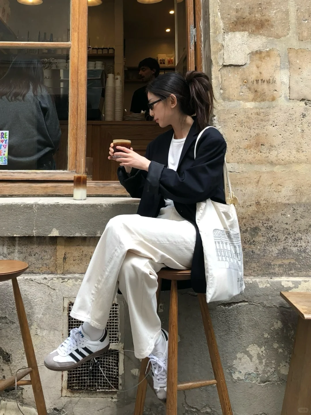 光之影&AI都市街头风,白衬衫+牛仔裤,清新自然,轻松出行!白色衬衫穿搭简